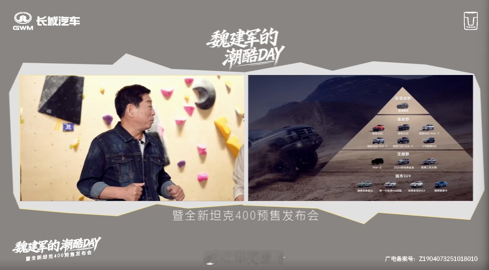 魏建军开启去爹味挑战 那位亲自参加越野比赛的老板魏建军又开始体验年轻人的东西了❗为了感知市场前沿,避免和市场脱节,体验了年轻人喜爱的电竞,说电竞就是年轻人的世界杯。坦克400结合了年轻人喜欢的机甲皮肤造型,设计了潮酷造型,紧跟时尚潮流,同时坦克400在性能上也是越野的新势力。[给力]