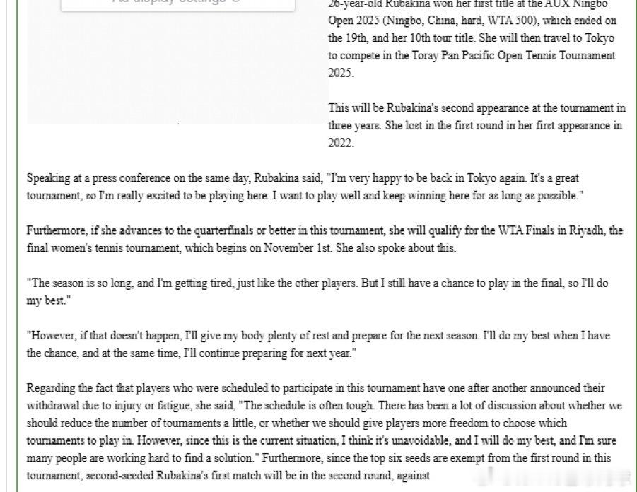 3️⃣谈论网球赛程;再次提到赛程比较密集,赛季很长。能进总决赛很好,进不了那就给自己放个假然后准备下一个赛季。