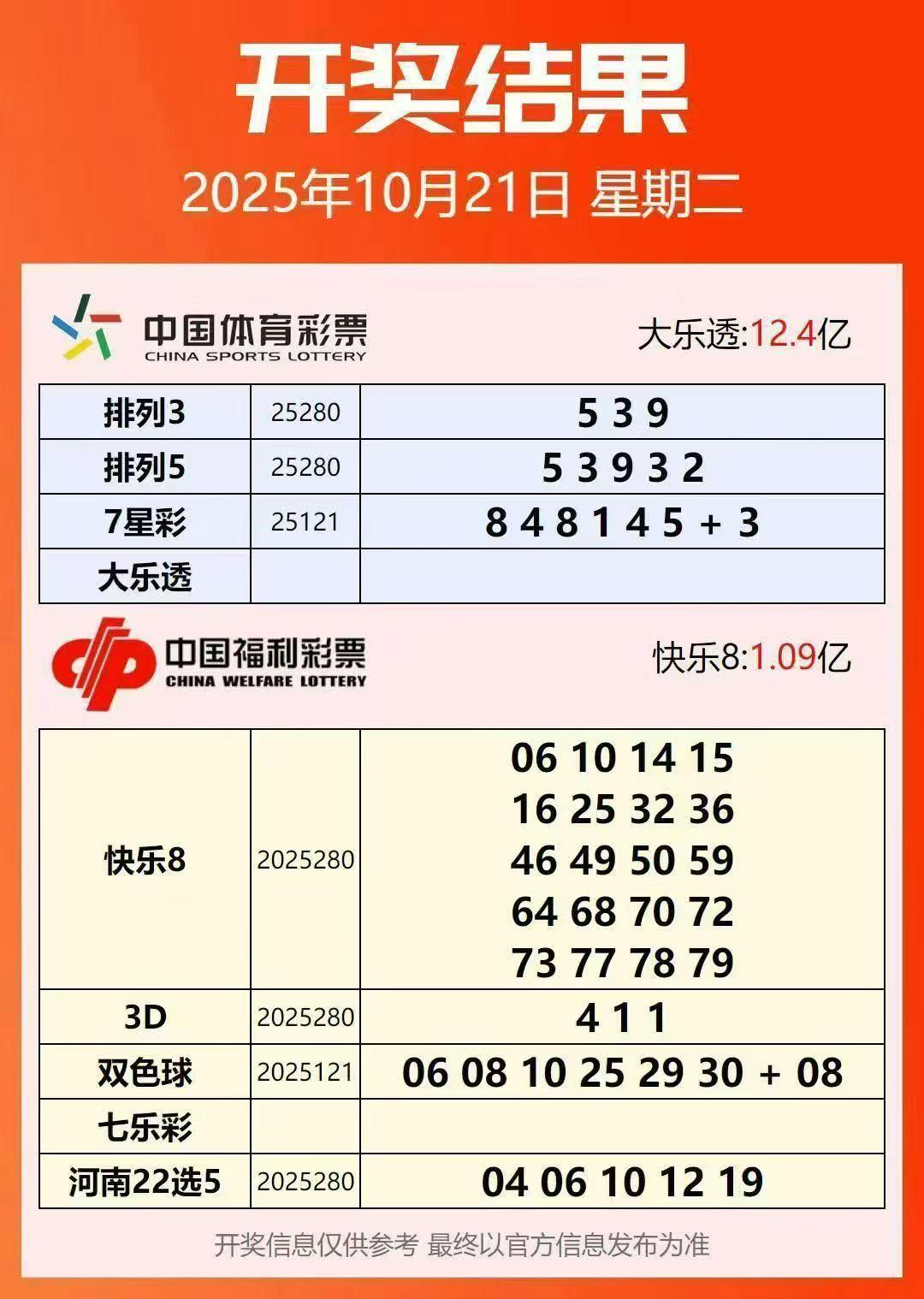 10月21号星期二,双色球开奖号码揭晓:06、08、10、25、29、30—08