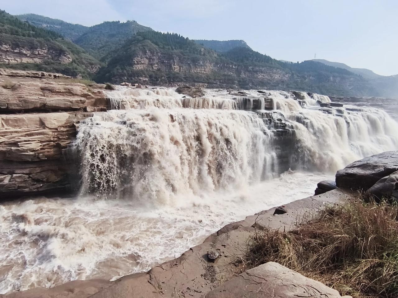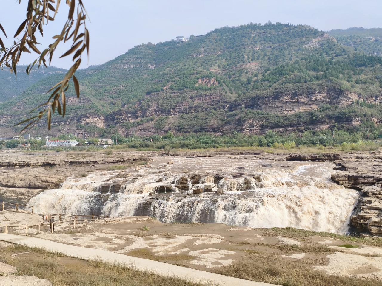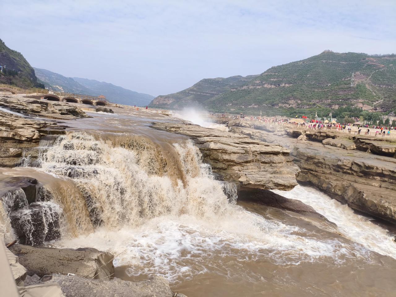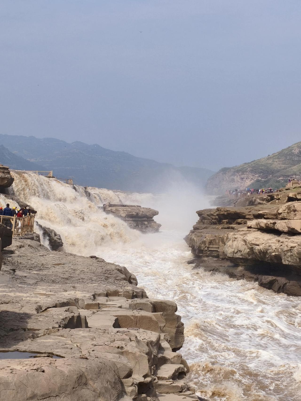 早上10点,我们从宜川县城出发,去陕西黄河壶口瀑布旅游区看瀑布。 从县城到黄河壶口瀑布,走国道40公里,一直在山间行走,道路弯弯绕绕,急弯又多,好在路面平整,不影响驾驶。 国道两边大山,一座接着一座,满山都是各种各样的树木,没想到宜川的植被这么好。 一个小时后到游客服务中心,游客中心到瀑布还有几公里,要坐景交车到壶口瀑布。 门票每人90元,景交车票40元。我们俩都过了60岁,是免门票人群,买了两张景交车票,花了80个大洋。 景交车15分钟一趟,方便快捷。坐上景交车,周围全是和我们一样的大爷大妈,这个时间段,大爷大妈是旅游的主力军。 二十多分钟到达壶口瀑布核心景区,还没进入景区,就听到水流撞击的声音,刚进景区,就看到飞流直泻的黄色瀑布。 这段时间恰逢黄河涨水,我们不仅看到“千里黄河一壶收”的神奇瀑布,还看到一些其它瀑布,站在黄河瀑布边,水流四溅,空气中水滴弥漫,大自然真是神奇,创造出一个又一个自然奇观! 不啰嗦了,直接上图。