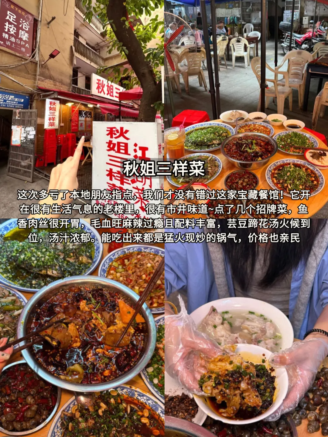 1️⃣秋姐三样菜:想要尝尝重庆江湖菜,可以去开在居民楼的秋姐三样菜,每道菜都下饭