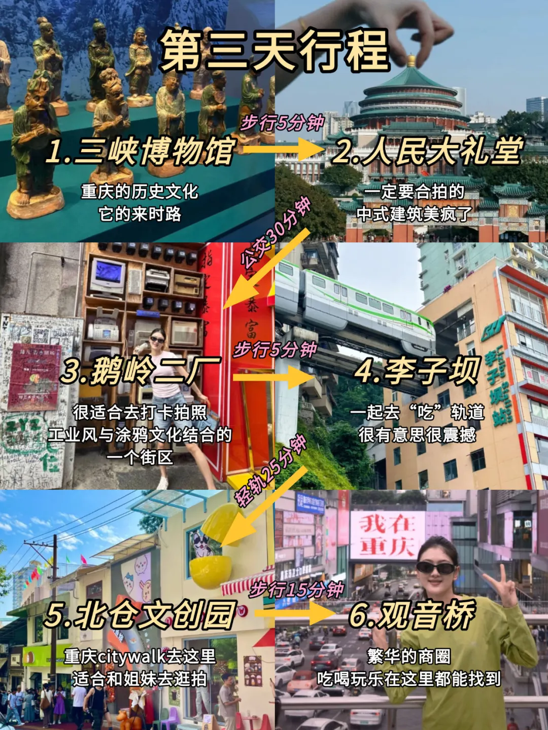 2️⃣DAY2:三峡博物馆→人民大礼堂→鹅岭二厂→李子坝→北仓文创园→观音桥