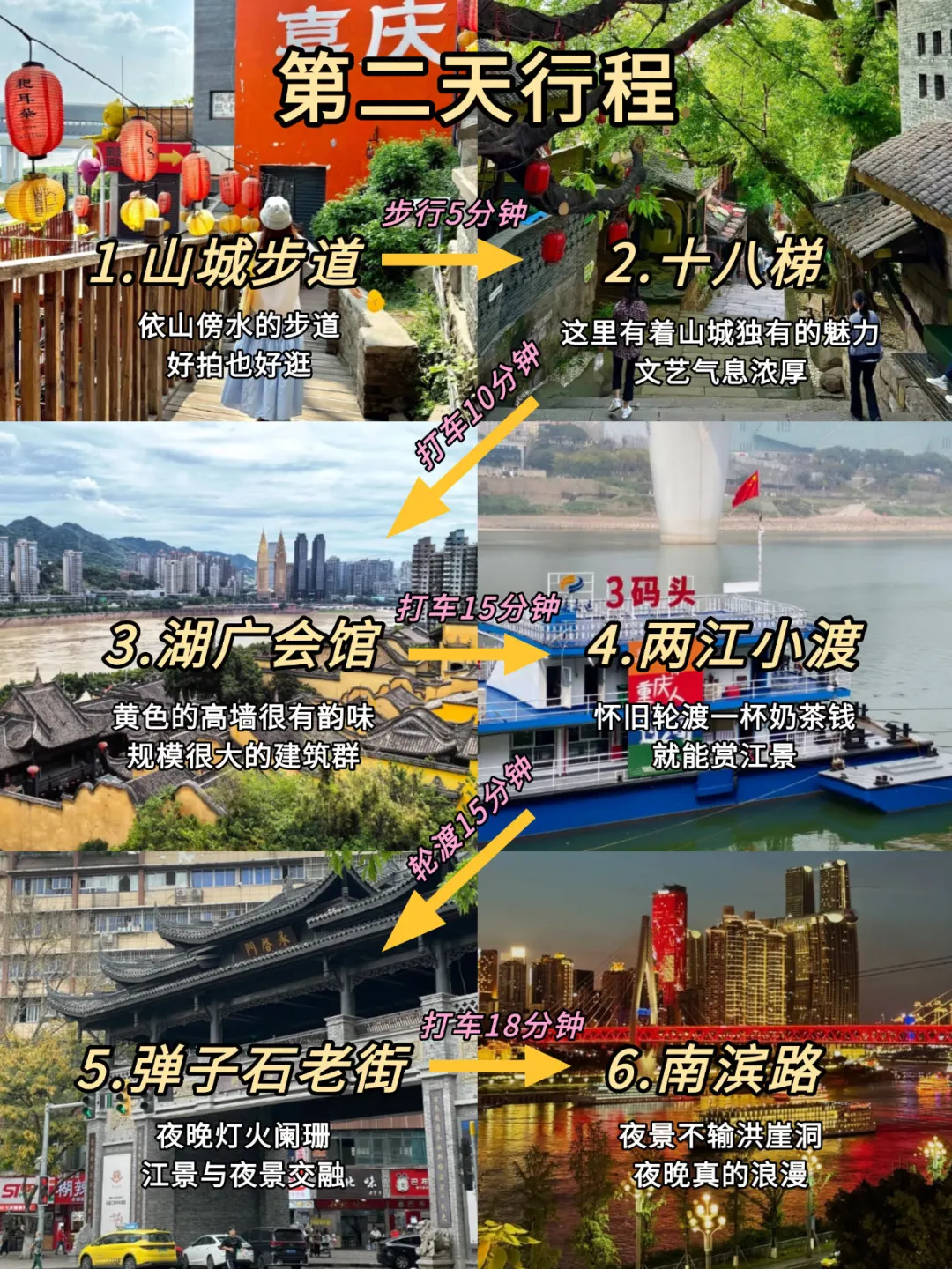 3️⃣DAY3:山城步道→十八梯→湖广会馆→两江小渡→弹子石老街→南滨路