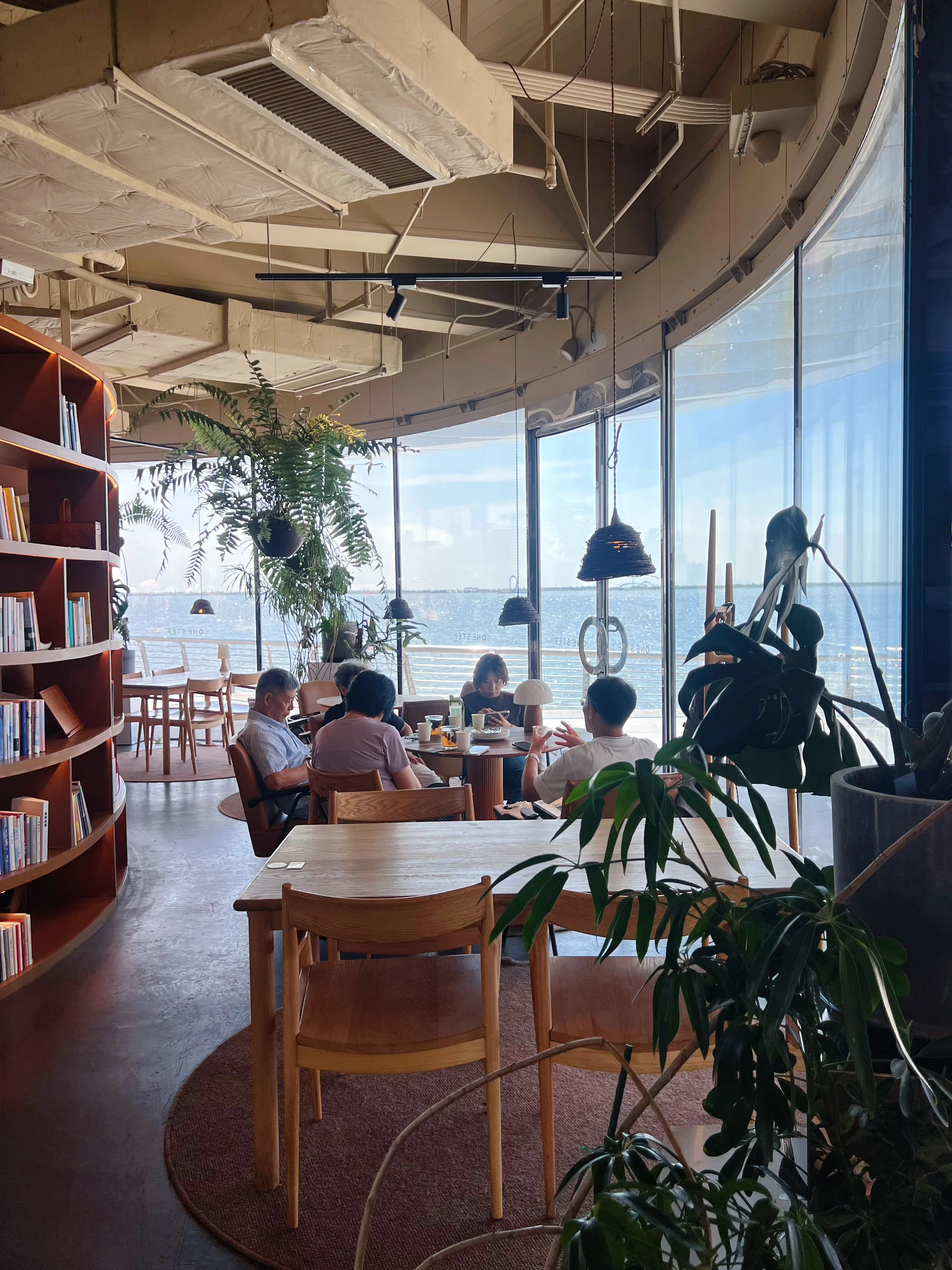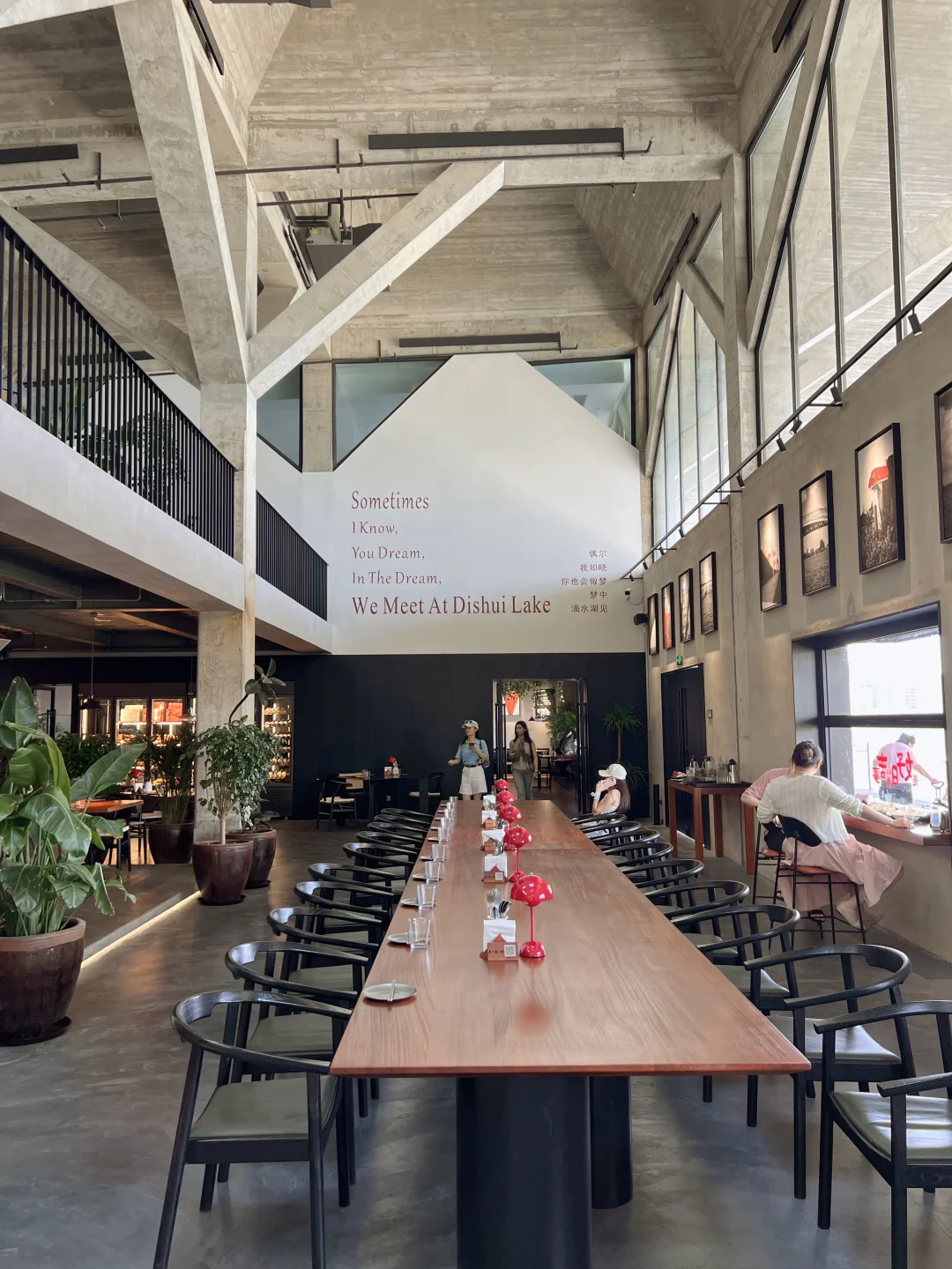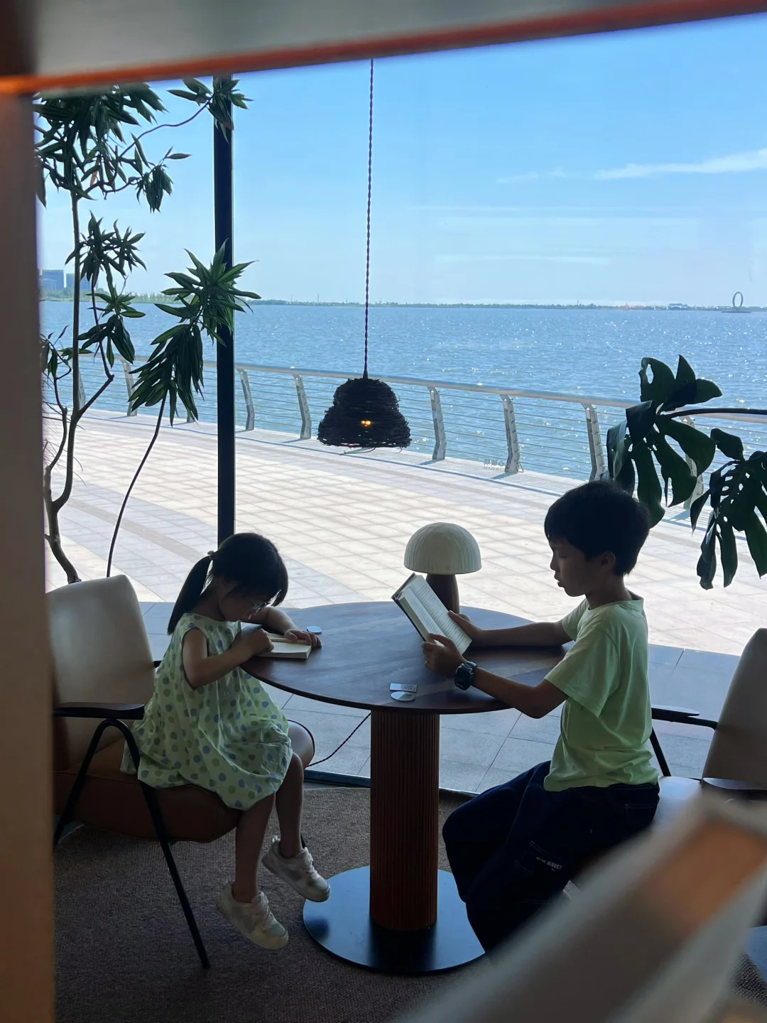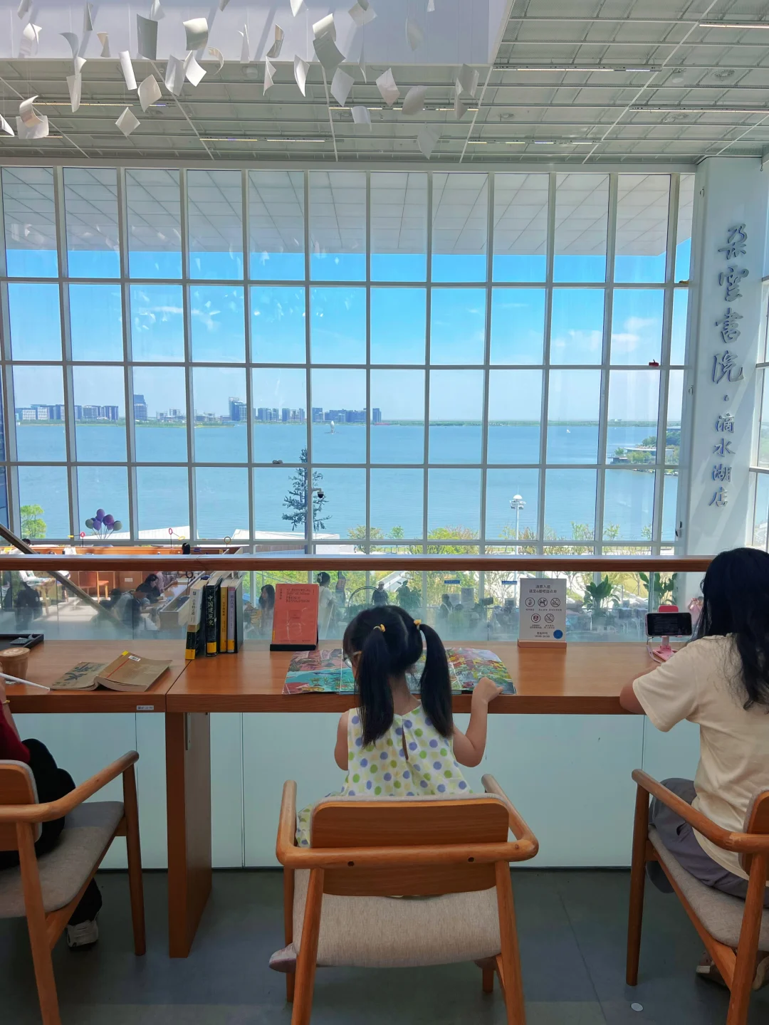 中午,去一尺花园西岸店用餐,270度环绕湖景,绿植+原木风的组合超治愈,藏书丰富,门口就是网红打卡装置