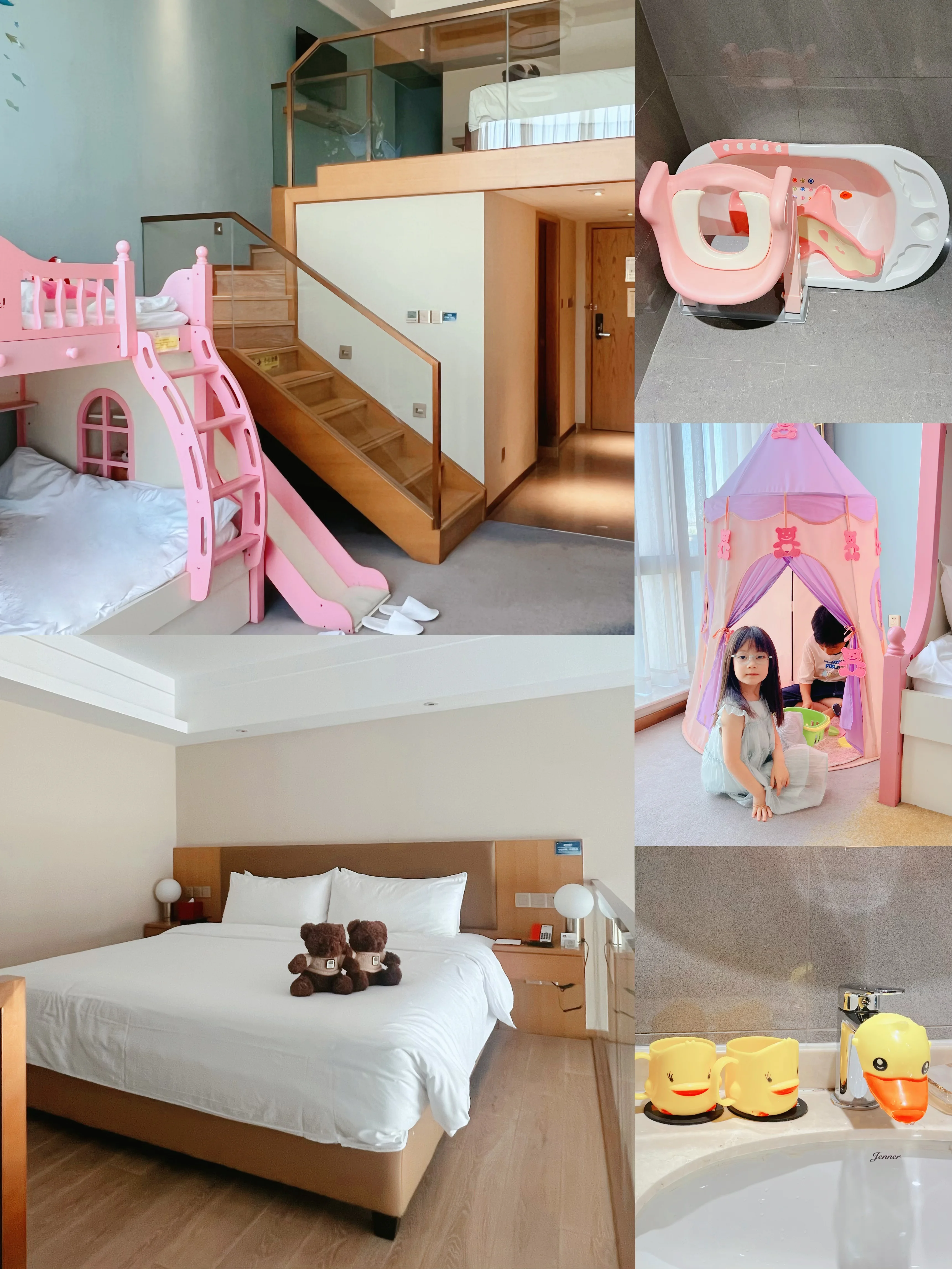 这次滴水湖之行,选对住宿几乎赢了一半。loft亲子房,简直就是为带老人、带娃的家庭量身定制,一张大床+高低床,🉑住4-6人。房内🈶帐篷、玩具、娃娃等儿童布置,还提供了一次性浴缸🛁套,高低床还带有滑滑梯🛝,小朋友真的太爱了。酒店隔壁就是商场,用餐也很方便,普通🛏️仅2.300元。开车🚗到海昌、天文馆基本都在15分钟↔️,性价比绝