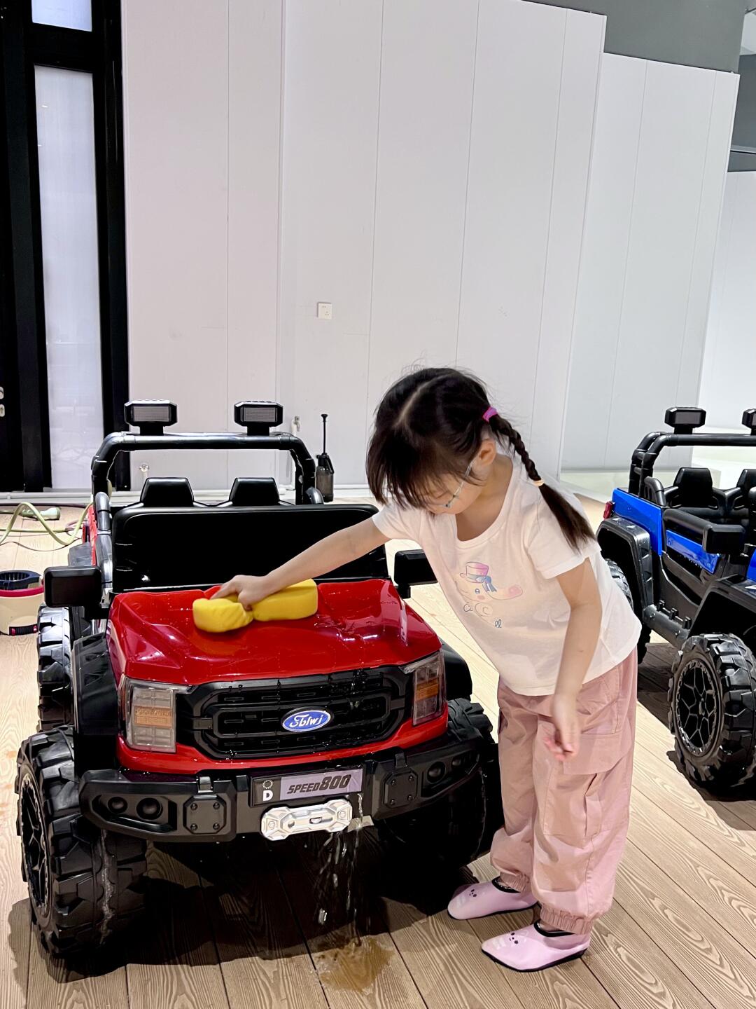 🔹洗车区:看着小朋友们抢着洗车的样子也太可爱了,原来“勤劳”也能那么有趣