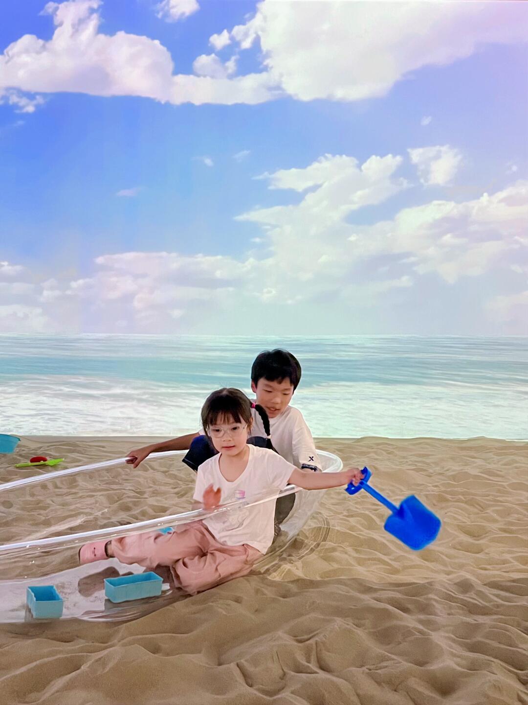 🔹沙滩海景:直接将沙池搬到“海边”,搭配透明小船,氛围感拉满💯