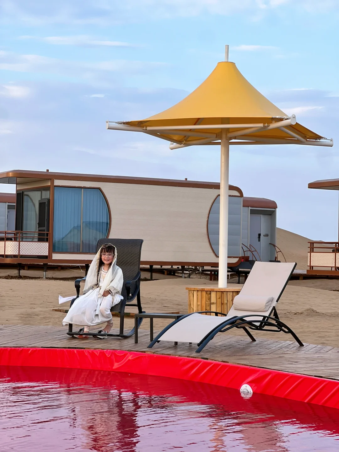 17:00到达夜鸣沙,当晚我们选住了25年新开的星宿太空舱🏨,房间很新很干净,每个房间配有天文望远镜🔭、滑沙板和挖沙工具,打开房门就是广袤沙漠