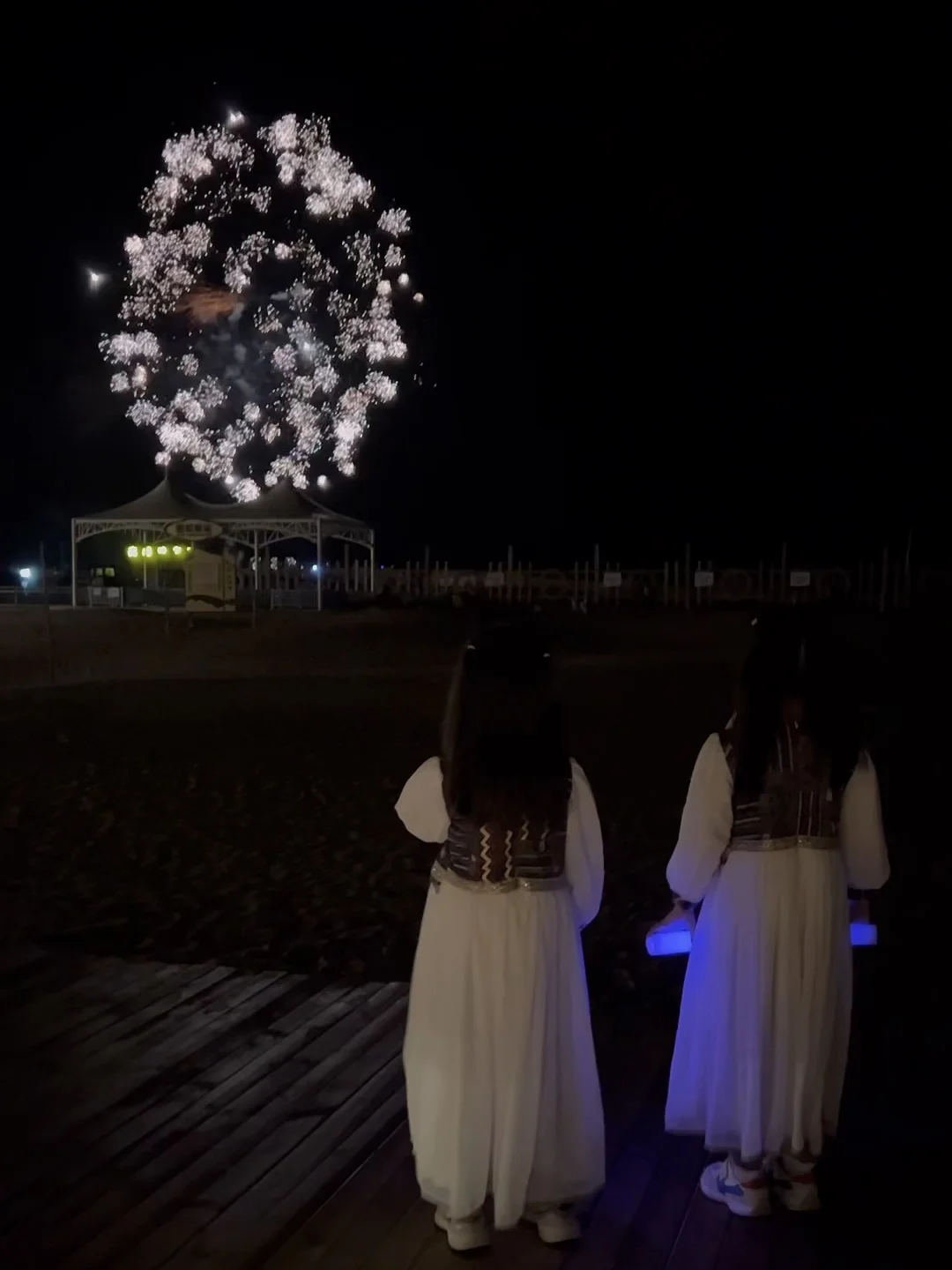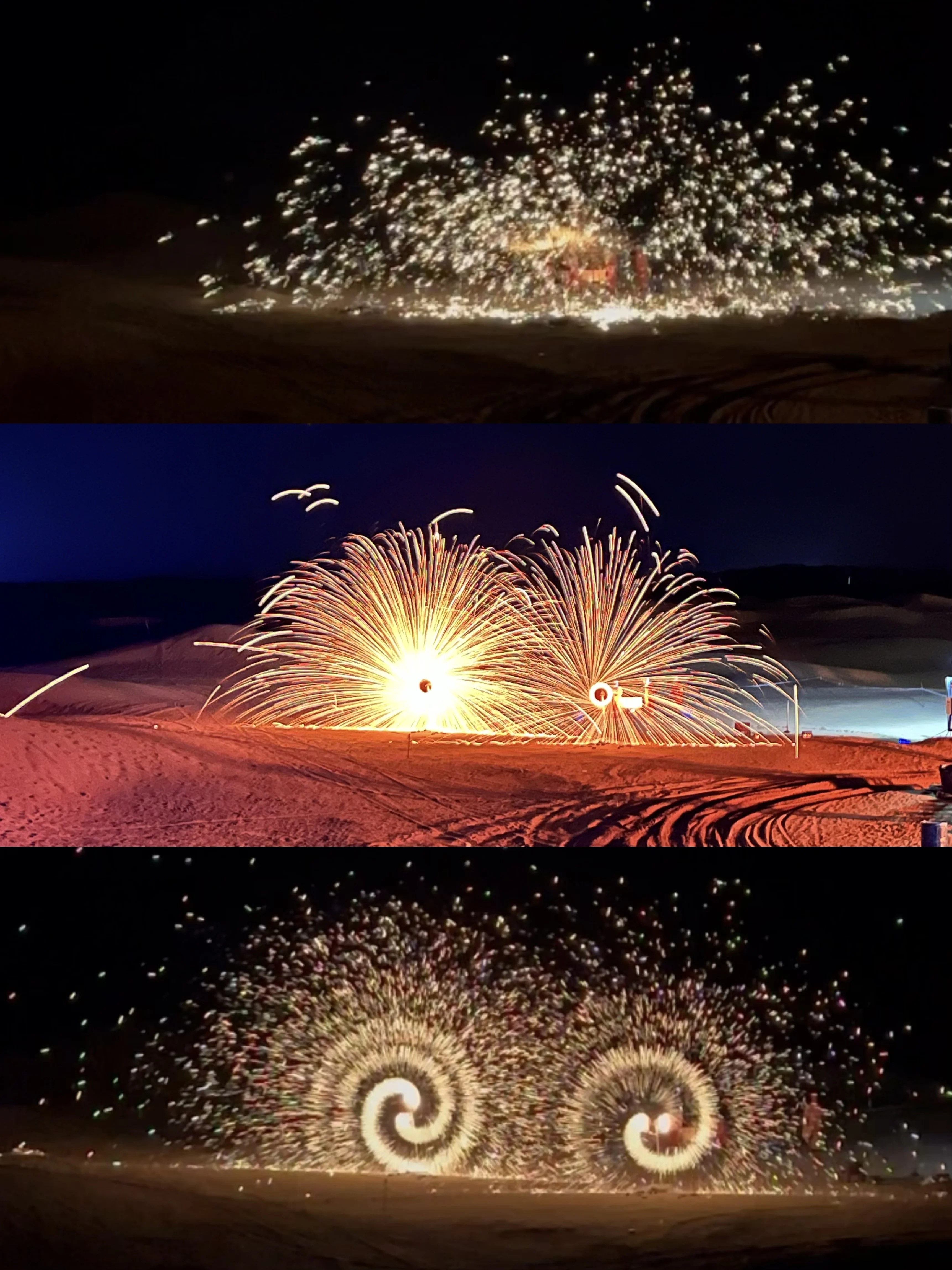 21:20夜鸣沙之夜,现场发荧光棒,有非遗打铁花、铁壶等表演,篝火晚会参与互动游戏,获胜者🉑获得加特林。活动结束后还有烟花秀,氛围感拉满💯