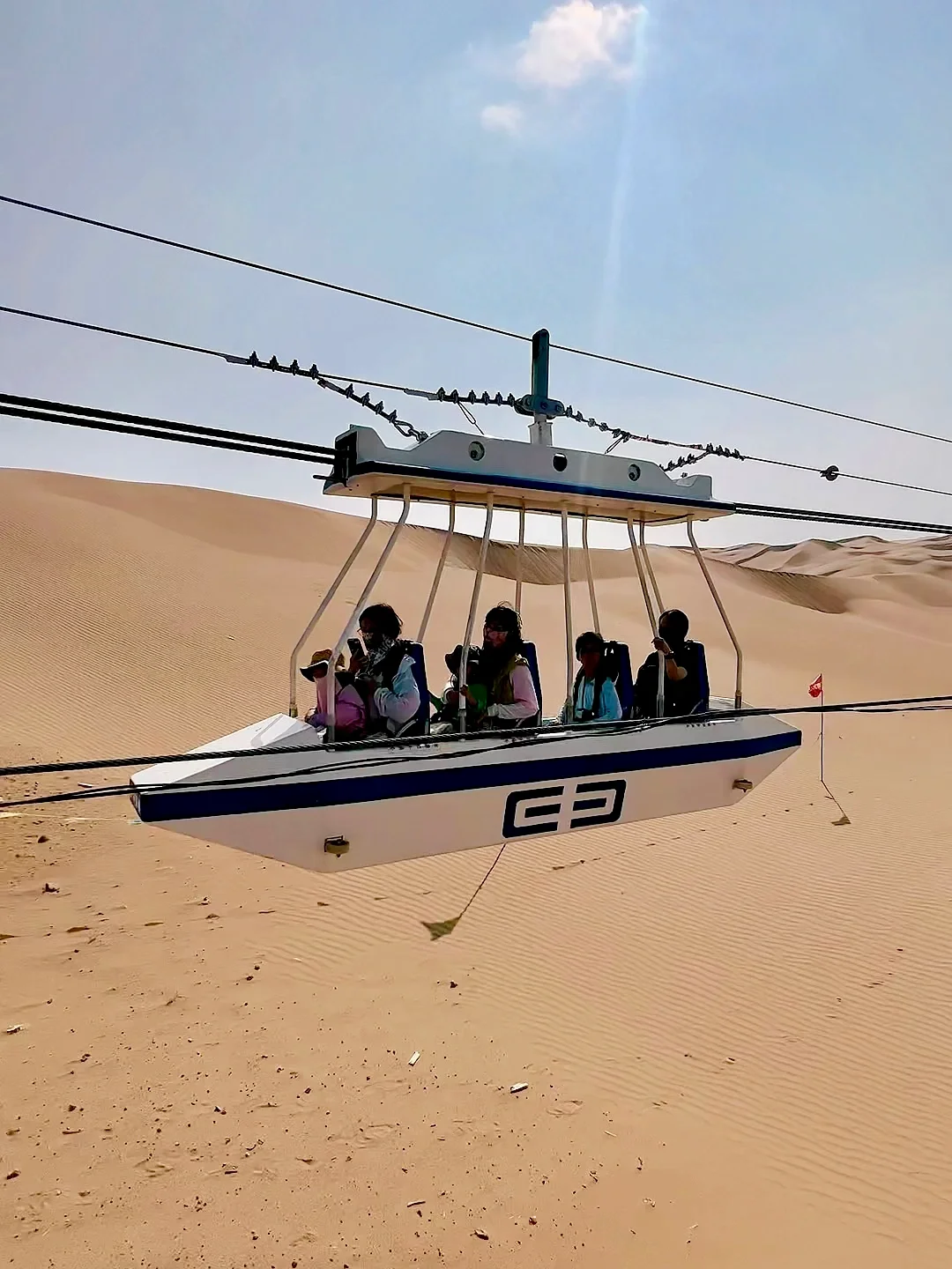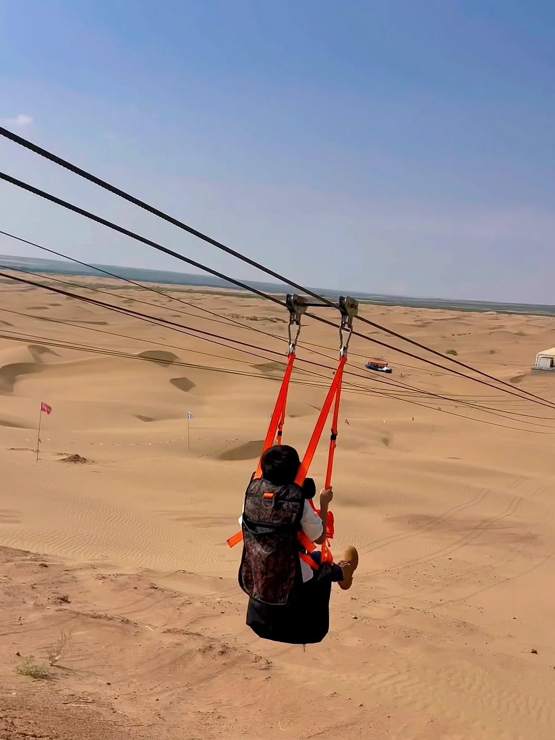 8:00项目开始营业,坐上沙漠摆渡车送往沙漠深处各个驿站,点到点几乎不用走路,除了高空滑索有身高要求,其余项目只要小朋友敢,家长抱着都能玩