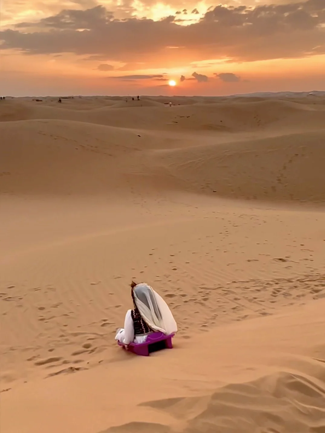 沙漠项目18:30截止,🉑先骑骆驼🐫,结束🔚后,正值落日时分,小朋友自由的在沙丘上奔跑,从一个坡滑向另一个,反反复复,像沙砾一样自由