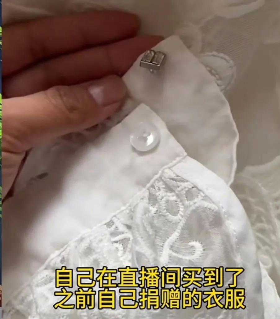“放心吧什么东西都到不了山区”这句话的含金量一直还在上升! 近日女子曾托朋友将一件白色蕾丝款衣物用于捐赠,这件衣服袖子一颗水晶扣缺失,是她在家随意找了颗普通纽扣缝上的。19号这天她在直播间偶遇同款,她越看越惊讶,于是买了下来,发现买到自己捐的衣服。 先不说自己花钱买到自己的旧衣服有多离谱了,人捐旧衣物是为送往山区给有需要的人的,谁能想到这却成了某些人牟利的手段。 这一事件是公益善意被商业利益异化的荒诞缩影,既暴露了旧衣捐赠流转链条的监管漏洞,也折射出直播带货领域的乱象,更严重透支了大众对公益的信任。