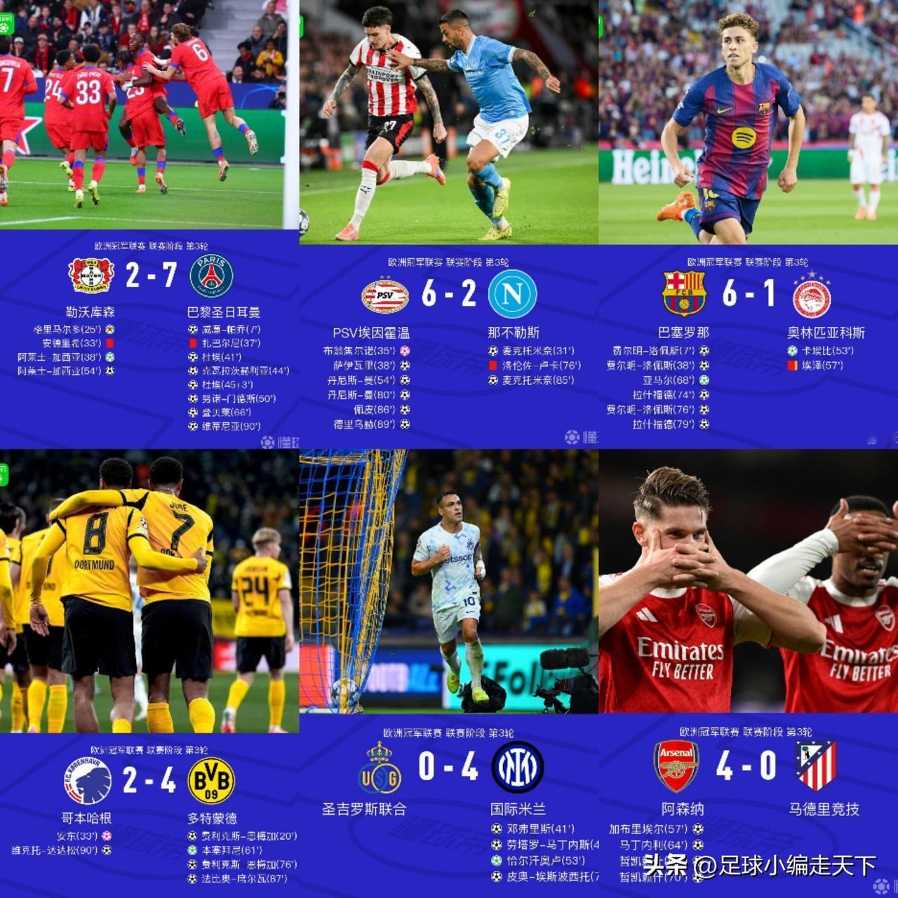 这轮欧冠是疯了吗?巴黎进7个,巴萨进6个,阿森纳、国米进4个。明天的拜仁、皇马、