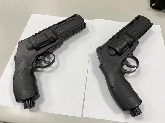台湾桃园市议员参选人保时捷枪击案,罪犯使用的枪支外形看着很奇特,看着像气枪。