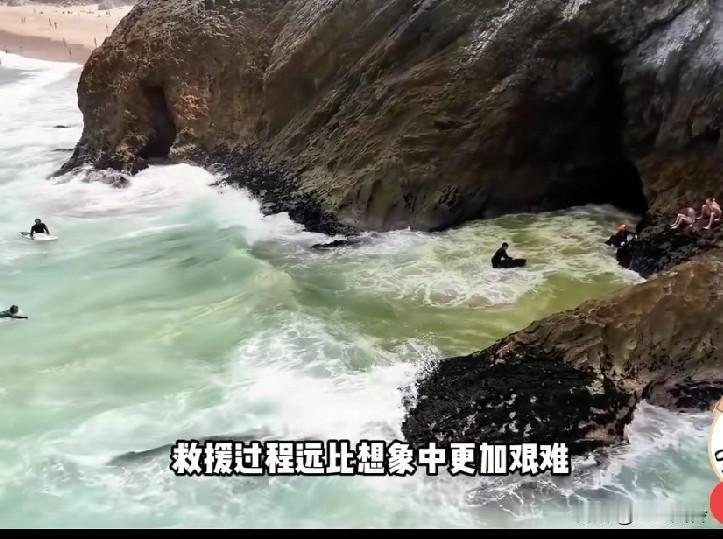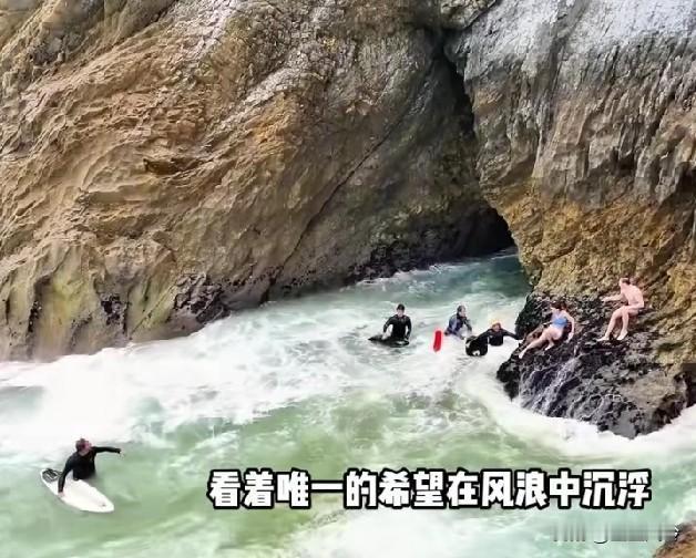 无知者自绝后路,正常海浪能打到颜色分割线区域,颜色不同就是海水冲刷造成的 潮位低的时候从沙滩绕过去的,涨潮了结果回不去了。大海很美,可也淹死过很多人,男的差点被遗忘了,后面又回来救他了,坐上去的时候已经后悔了,这该死的面子
