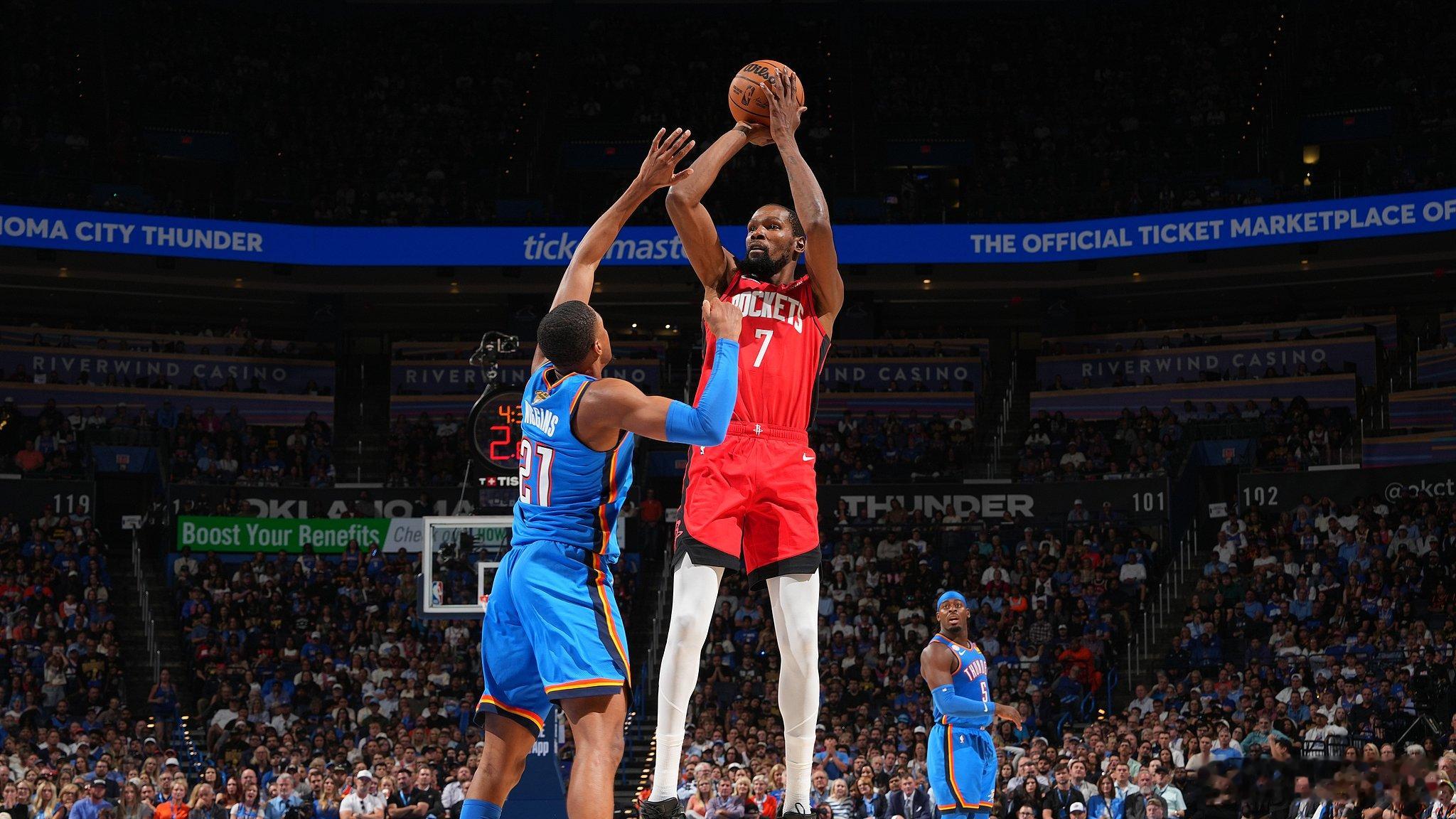 拿下39分11篮板7助攻2抢断1盖帽,三分球8中5的申京,让人眼前一亮。申京在这一场的表现,妥妥的约基奇级别。刚刚加盟火箭的杜兰特,登场47分钟,巧合般地拿下了如同他加盟太阳时首秀的23分。只不过最后的结果有些唏嘘,阿杜不仅在加时赛中球权大幅减少,还在最后时刻被亚历山大造成犯规六犯离场。单从这场比赛来说,火箭目前的问题还是有很多的。不过,急需解决的是火箭没有一个能够梳理好进攻的后卫……阿门还需磨练,而在阿门抽筋后临危授命的谢泼德,难堪大用。总不能指望着申京和杜兰特,顶着对面后卫的骚扰运球过半场。好钢还得用在刀刃上,不能让这两位在运球过半场上消耗过多体力。不可否认的是,杜兰特的到来以及申京的进化,让这支球队充满了焕然一新。虽然火箭在第一场暴露出了自己的问题,但这只是第一场,距离季后赛,还有很长时间。