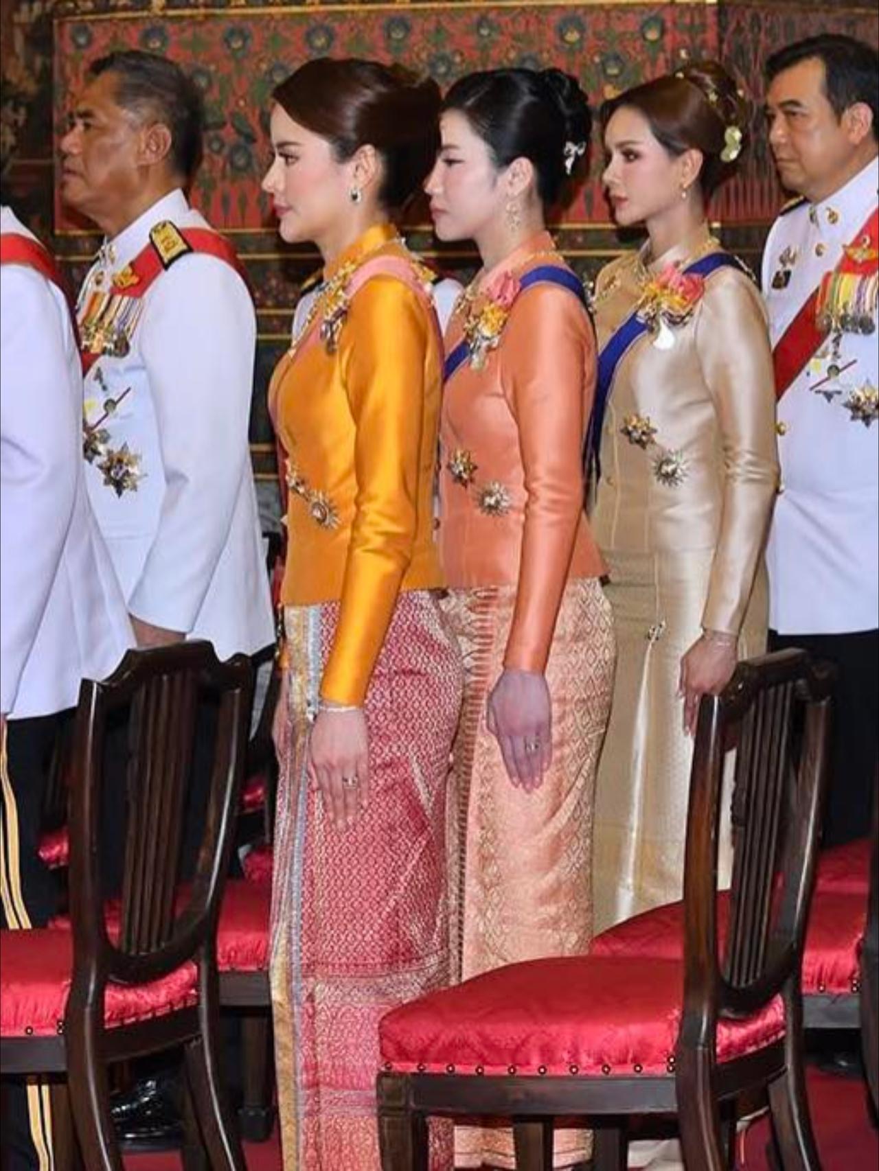 3位嫔妃花枝招展,换上奢华的泰式礼服 泰王身旁三位妾室如今风光正盛。此前她们多着