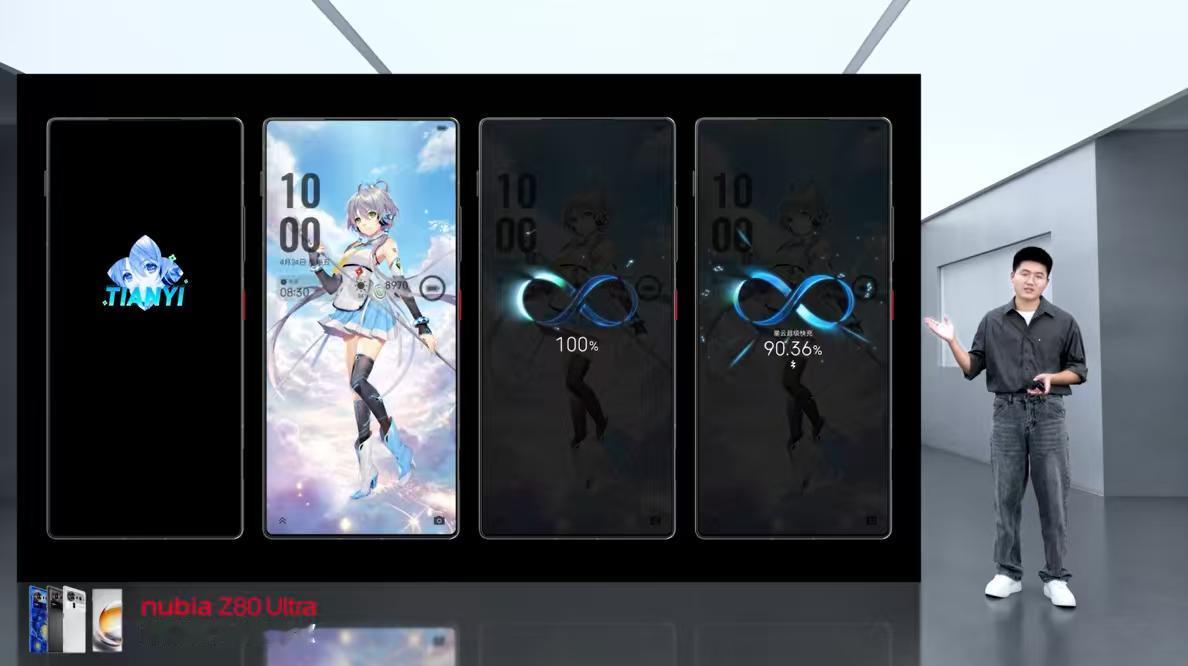 努比亚Z80Ultra提供魅影黑、凝光白两款经典配色,采用韧甲晶纤材质,带来超越金属的独特触感,支持墨水屏手机保护壳和电子徽章等配件。 星空典藏版以「星月夜」为灵感,微米级的星轨环绕立体光刻,让星光从背面流淌至掌心。洛天依限定版炽烈而灵动的红,造型独特的共鸣翼,搭配中国结、天依小花和图形元素等元素点缀。专属定制洛天依高清壁纸、洛天依动效、相机水印,以及洛天依周边亚克力摆台、洛天依保护壳、电子徽章等潮流收藏品,精致诚意拉满!