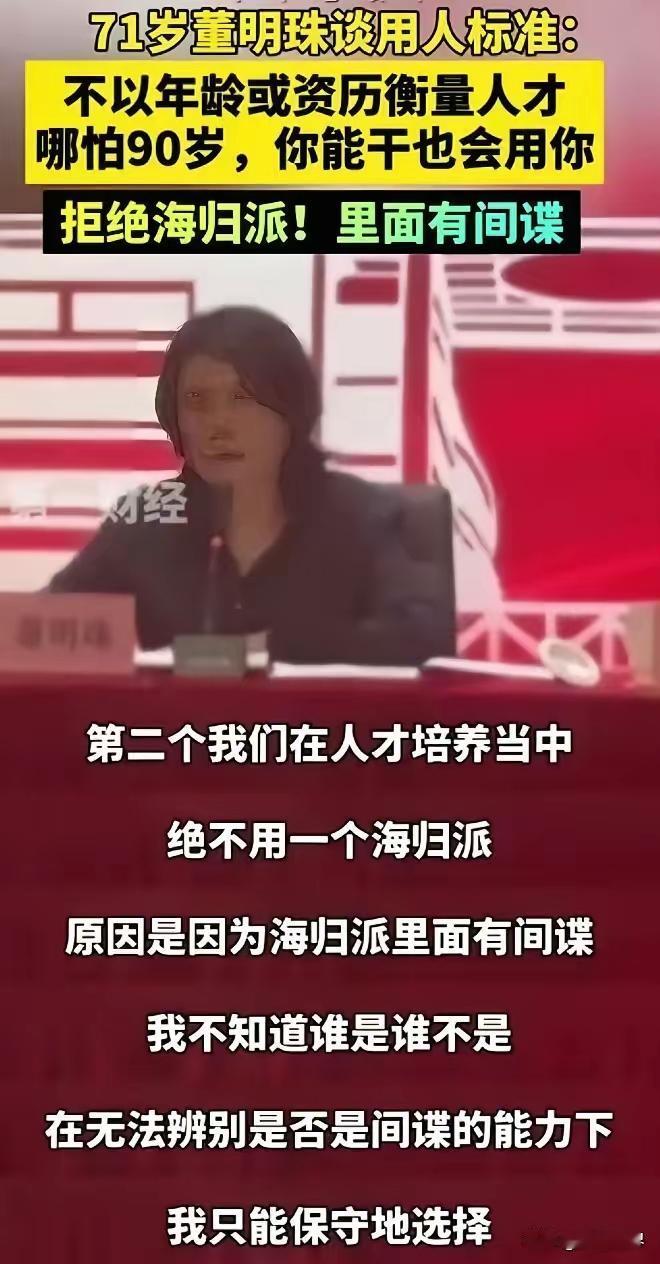 10月22日,《南京晨报》报道,海归留学生郝某被策反,长期潜伏在我核心要害部门,多次与间谍接头出卖情报,被判无期! 当年董明珠说出不用留学生的话刺痛了多少留学生,如今看来非常正确的选择。海龟的成材率越来越低,风险却越来越高!你愿意冒着10%的概率用一个可能造成几个亿损失的留学生吗 为董明珠点赞,你看通过董明珠几年来的表现,你会发现她是一个率真、诚实、务实、爱国的企业家,无论和谁比都有她值得肯定的一面,应树立为国家企业家的楷模和标杆,同属任正非阵营,为她点赞👍!