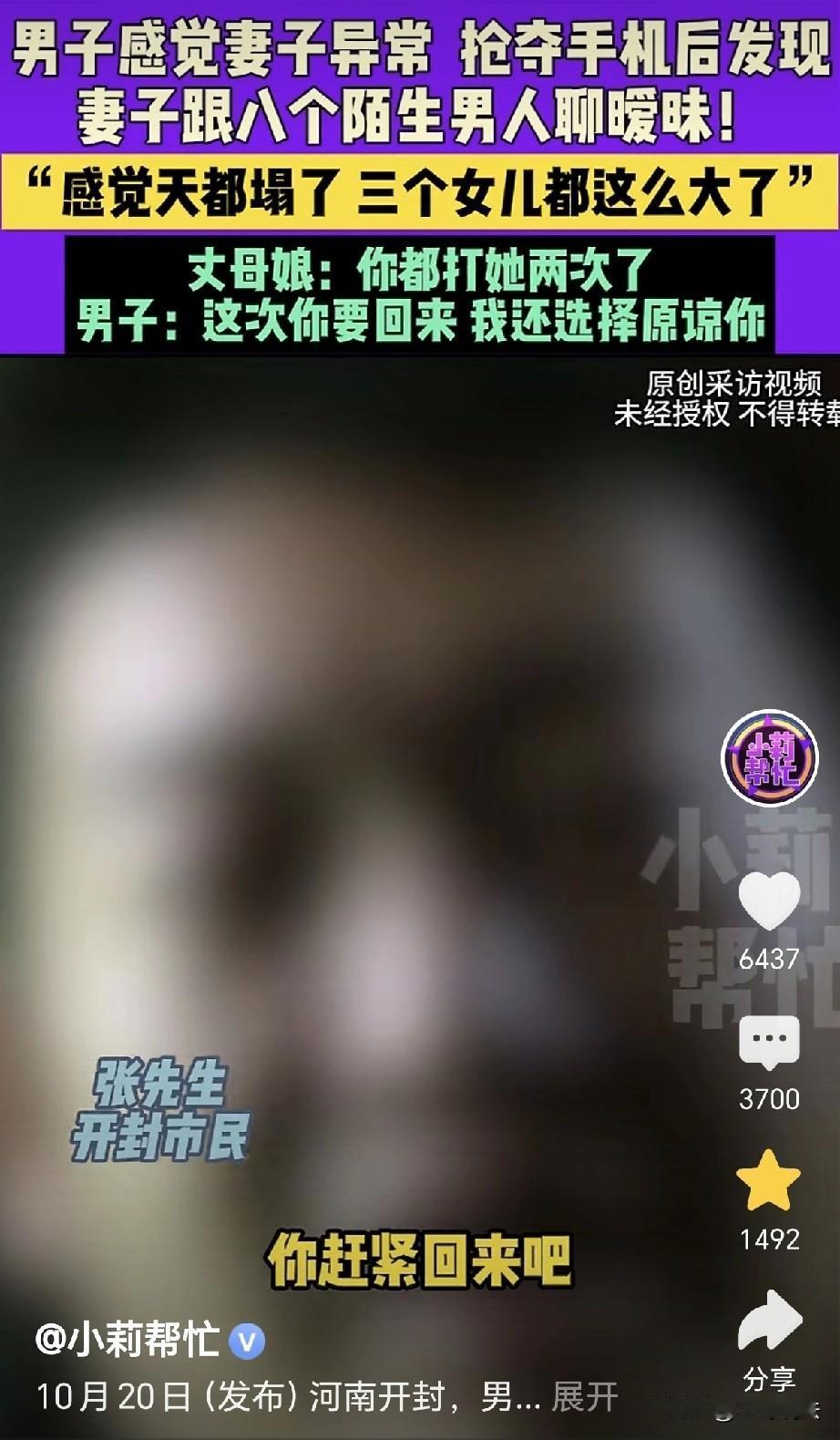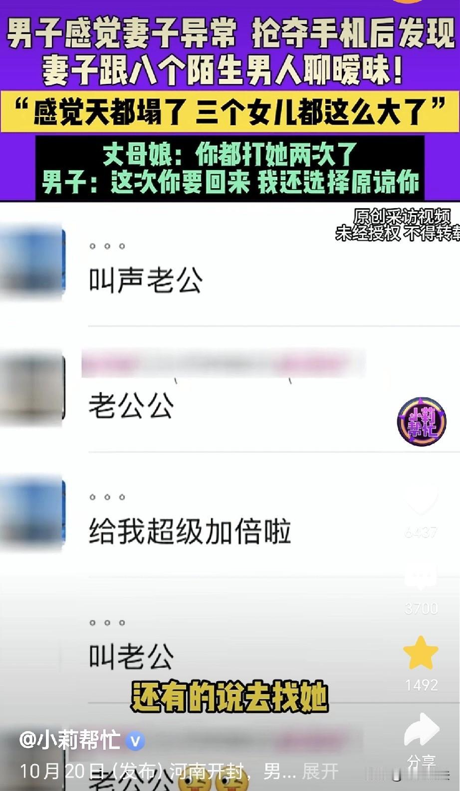 河南开封,一男子发现,妻子有些异常,男子夺过手机,发现妻子和8个男人聊天,她跟男