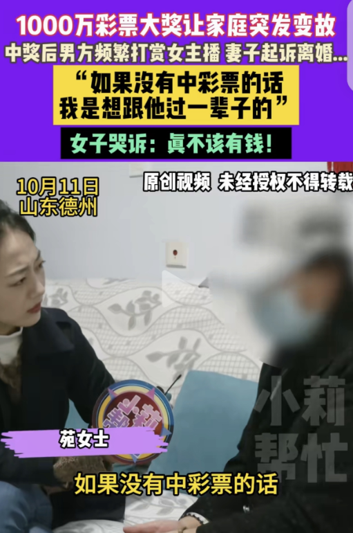 “真不该有钱”,当山东德州的苑女士发出这声叹息时,她哀叹的不是那笔从天而降的千万巨奖,而是一段被财富彻底照出原形的婚姻。