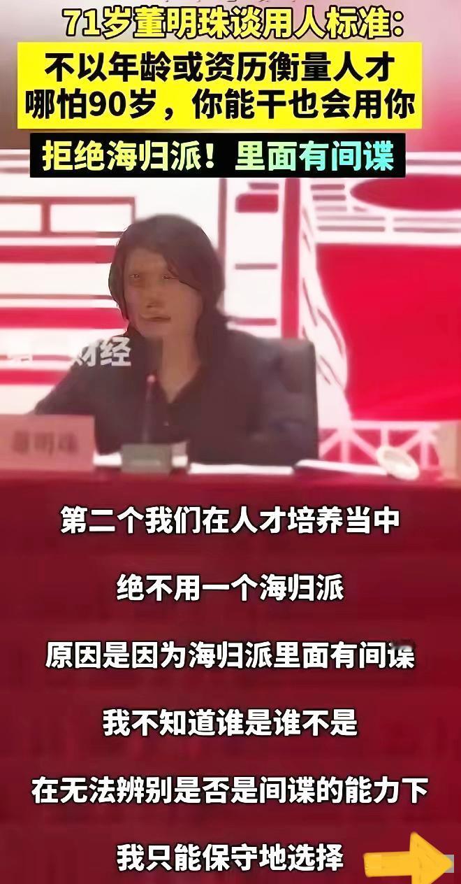 董明珠这波“预言家”体质,不服是真不行!10月22日“保密观”披露的案例直接给现实上了一课:海归郝某在境外被策反,回国后潜伏涉密单位,卖了5项机密级情报,最终判了无期。 想想当初董明珠说“海归里有间谍,分不清谁是谁不是”,多少人跳出来骂她极端,胡锡进更是五天连发六文追着让她道歉。现在看,她哪里是偏激,分明是见过真风险的清醒。 别拿“贴标签”说事,郝某的案例摆着,间谍渗透就是会盯着留学生这类群体下手,用兼职、帮忙当幌子拉人下水。董明珠的话,本质是对安全底线的警惕,不是否定所有海归。 那些当初忙着批判的人,现在该醒了吧?安全这根弦从来不能松,你觉得该怎么平衡人才引进和风险防范呢?