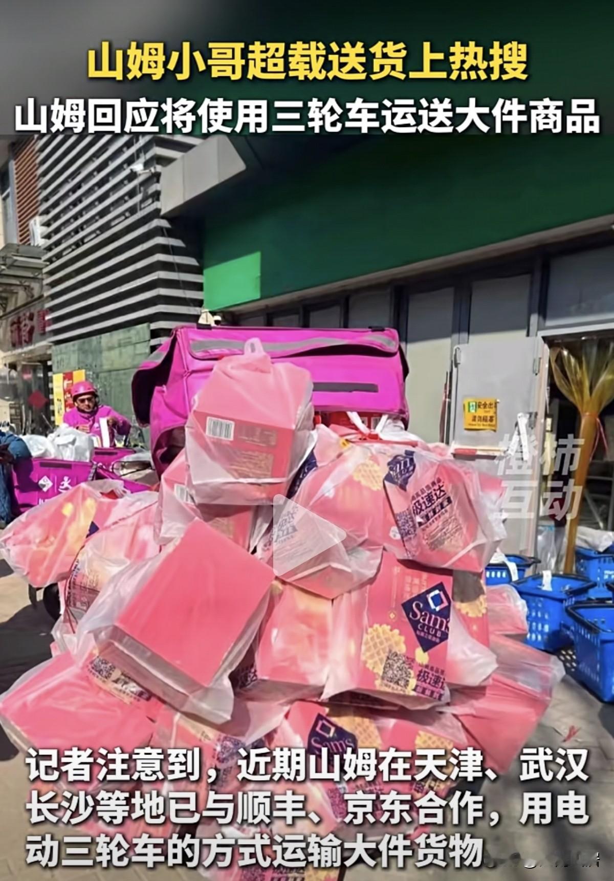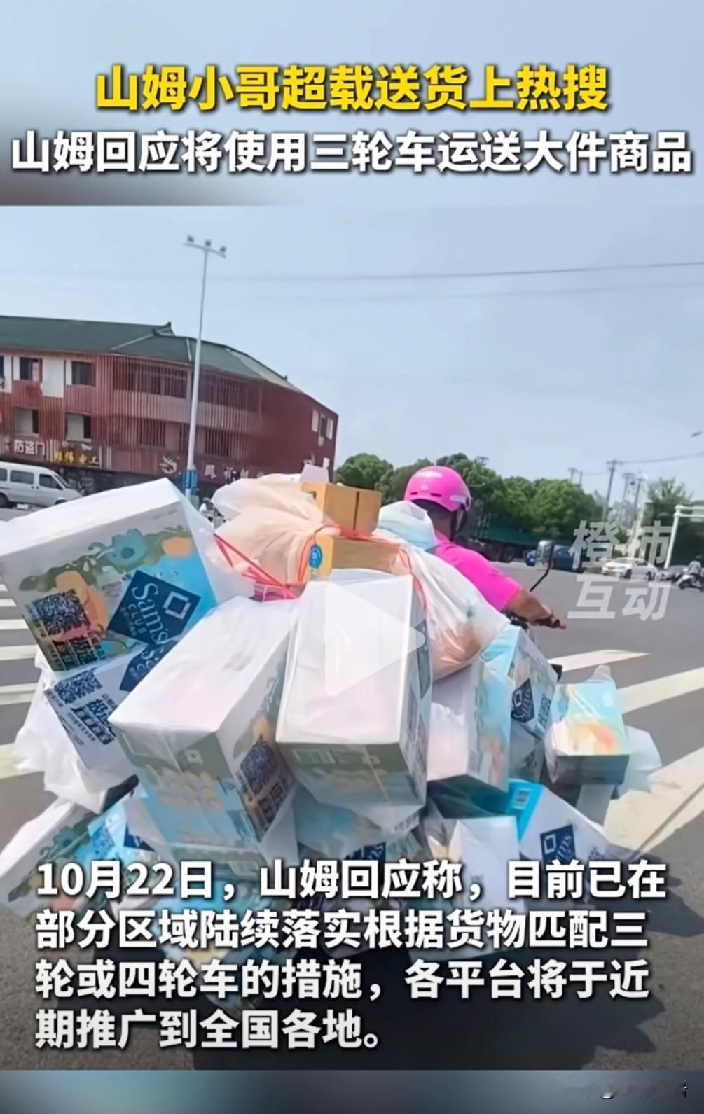 山姆主要是大件型商品比较多,顾客下单后,容易造成配送员所骑行的电瓶车“超载”。此事在引发了热议,上了热搜后,山姆方面也做出了回应。目前已在部分区域,根据所配送的货物情况,给配送员匹配三轮或者四轮车。并且跟各平台合作,后续将推广到全国各地。 山姆超市,也算是囤货型超市,不少商品都是“量大管饱”型的。能够跟顺丰、京东等平方合作,用电动三轮车配送商品,倒也能解决配送员骑二轮电瓶车超载的问题。据报道,目前山姆已经在天津、武汉、长沙等地,跟平台合作,用电动三轮车的方式运送大件货物。 来源:都市快报