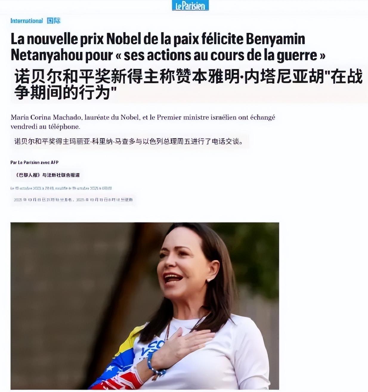 太恶心了!诺贝尔和平奖得主、委内瑞拉马查多致电内塔尼亚胡,对他在加沙实施的种族屠杀灭绝战争表示赞赏。 太讽刺了!诺贝尔和平奖就是对“和平”两个字的亵渎! 这就是诺贝尔和平奖政治化的表现,明目张胆支持反人类罪行! 有网友表示: 不反政府、不反人类都拿不到诺贝尔和平奖!这个奖的评审委员会就是邪恶的象征! 这是要把九泉之下的诺贝尔给气活过来,把这家伙给带走!