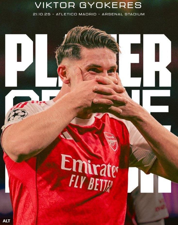 【梅开二度,阿森纳官方:约克雷斯当选4-0马竞队内最佳球员】