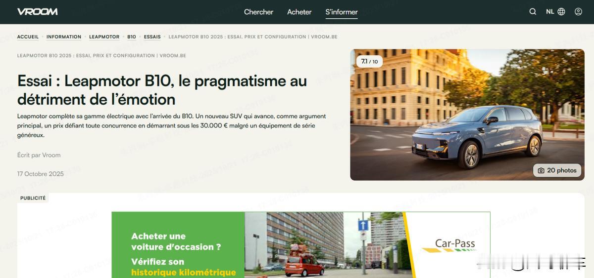 老外都夸疯了!零跑 B10 征服全球媒体   在国内市场表现不俗,9月交付达11781辆的零跑B10,登陆海外市场后,也受到了海外消费者的广泛认可;而且在近期的试驾活动中,还有不少国际大媒体,例如英国的《TopGear》、德国的《Auto Bild》都参加了此次试驾活动。   从海外媒体的反馈来看,他们对B10高度认可,“VROOM”这家海外媒体就给出了“Leapmotor B10专为追求实用的驾驶者打造,提供舒适宽敞、配置齐全的电动SUV。这款车确实满足了所有关键配置需求”的高评价。要知道,欧洲汽车市场标准相当高,欧洲车主对车辆的要求不低,中国汽车进入欧洲市场的门槛越来越高。而零跑可以顺利进入欧洲市场,并在当地牢牢扎根,主要是其产品力出色以及品质过硬,还是以B10为例,它自诞生之日起就是全球车定位,品质完全符合欧洲标准。   还值得一提的是,和Stellantis集团的合作,让零跑凭借“轻资产”模式在海外市场快速建立起完善的销售和服务渠道;产品和模式都出色的零跑,其累计出口量自然领跑新势力阵营。   可以说,零跑做到了“国内海外两开花”,一定程度上彰显了中国智造的非凡实力。我们有理由相信,零跑在海外市场还会创造更多辉煌。 零跑b10 零跑汽车