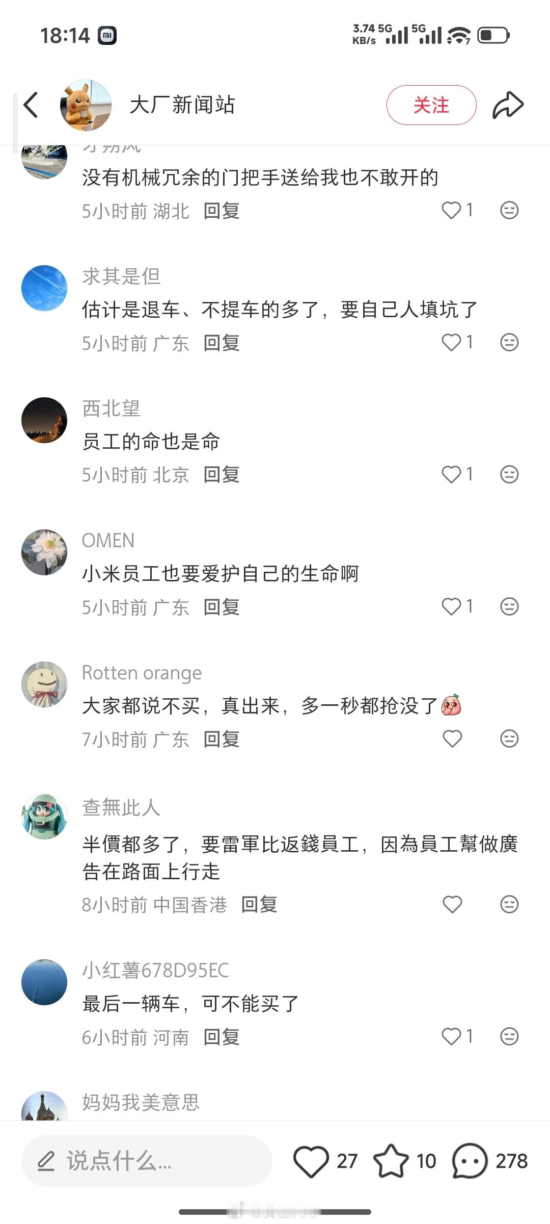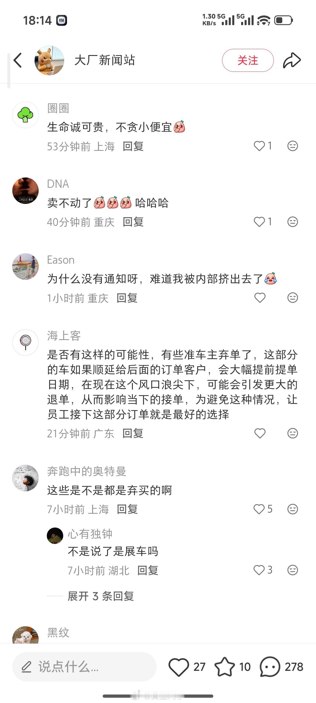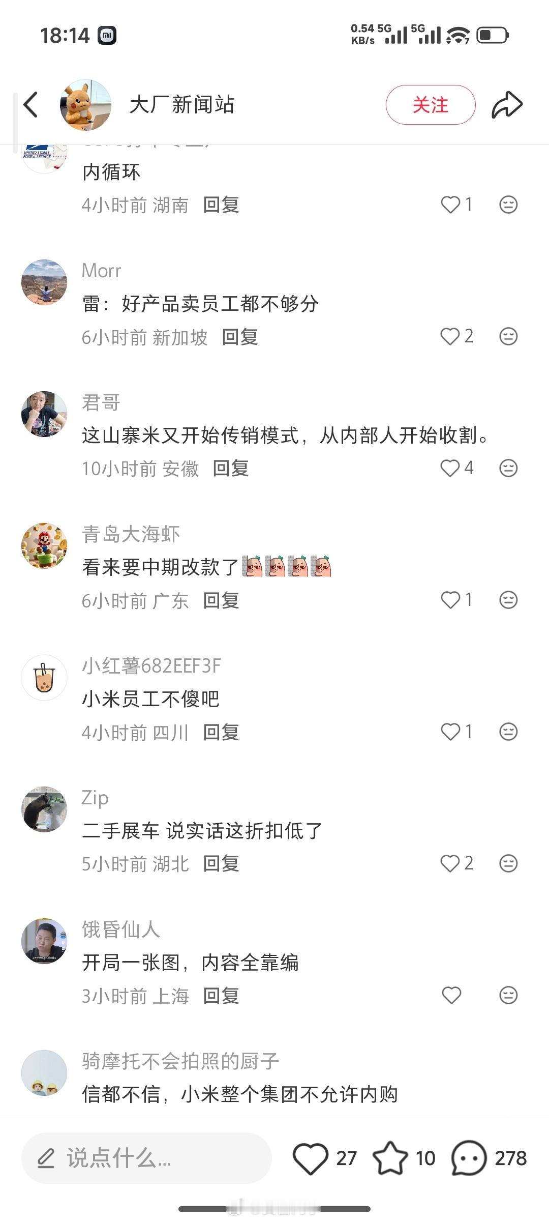 基本上是把节奏往“小米车子卖不动了,用来卖给员工接盘”的方向上带;还有各种恶评