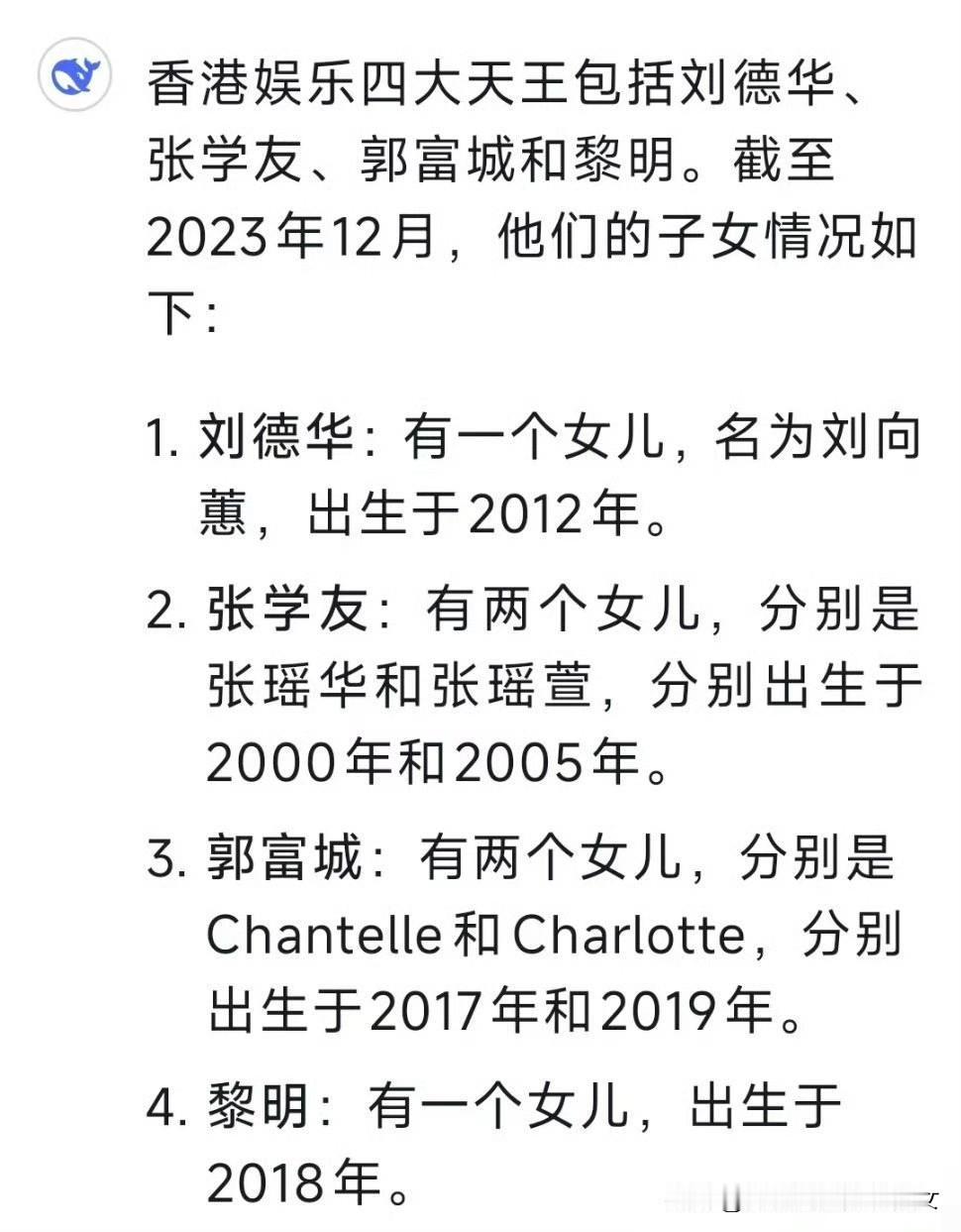 郭富城三胎再得女,大眼睛高鼻梁美人胚子,发文自诩“女神之家”! 10月22日晚,就在刚刚,郭富城在社交平台官宣了三胎得女的消息,称:“母女平安,感恩所有。” 他还大方晒出了女儿的正面照,照片中的小女婴皮肤白皙,眼睛大大的,鼻梁高挺,嘴巴小巧玲珑,非常漂亮,尽管才刚出生没几天,但是一看就是个美人胚子! 郭富城60岁迎来三胎,也算是喜事一桩。至此,他已经有三个女儿承欢膝下了。 此前一直有网传方媛这胎极有可能是男孩,还有关于各种“奖励”之类的谣言。这次郭富城发文也是力破传言,他表示自己无比幸福和富足,无论儿子还是女儿都是上天赐的礼物,并且自诩“女神之家”,也算是公开力挺和维护方媛。 有意思的是,至今为止“四大天王”的“女儿定律”还是没有被打破。[偷笑]