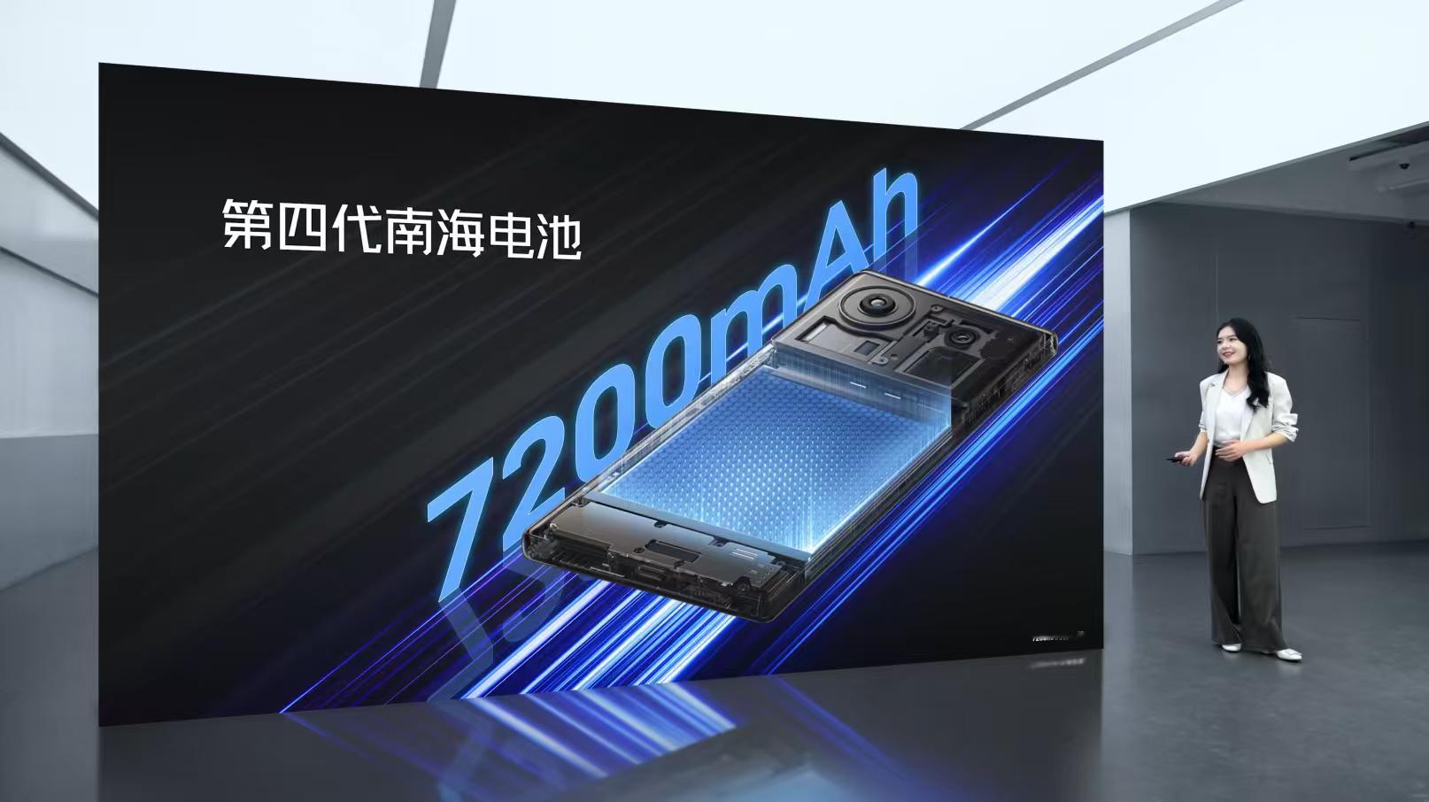 正面依然无孔真全面直屏, 采用6.85英寸京东方X10材质真·无孔直屏,带来无挖孔、无遮挡的纯粹视觉享受。 支持144Hz智能高刷新率,滑动操控丝滑流畅;通过2592Hz超高频PWM调光,大幅缓解视觉疲劳,呵护双眼健康。内置7200mAh行业领先容量超大电池,支持90W有线超级快充与80W无线闪充。