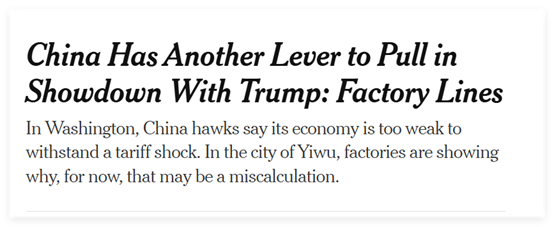 其中,《纽约时报》记者艾莎(AlexandraStevenson)专门来到在不少美国媒体人以及学者看来,可以直观感受中国贸易情况好坏的浙江义乌。而义乌仍然火爆的外贸交易,包括当地贸易商对她讲述的情况,让这位美国记者很快意识到,中国强大的制造业,以及为了应对地缘政治风险而不断多元化的海外市场,是中国底气的一大由来。