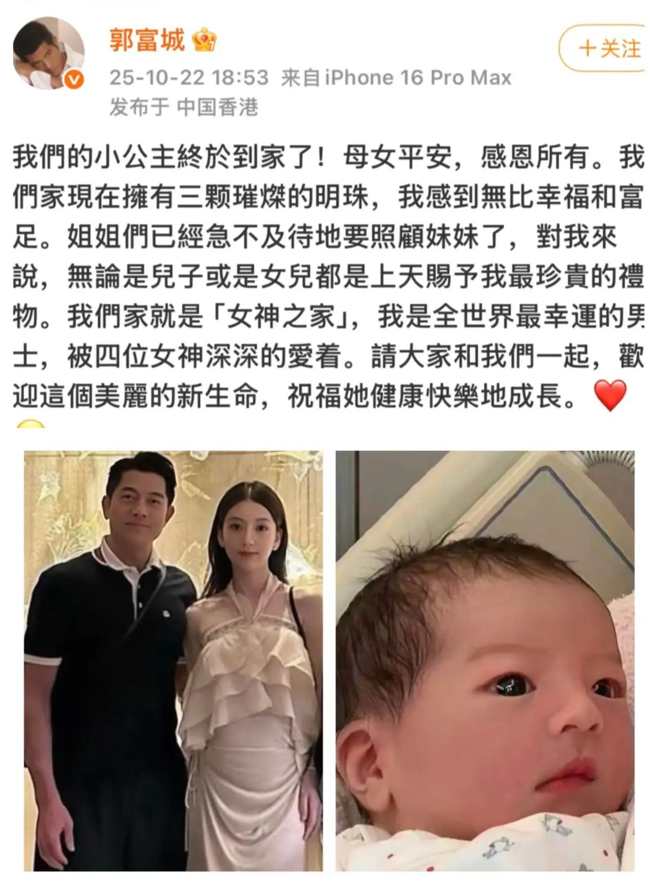 我的老天爷 ,真的命好不好, 出生面相就能看出来。 郭富城公布方媛生了, 外界猜测了这么久性别,原来是女孩子。 郭富城自己也说:“无论是兒子或是女兒都是上天賜予我最珍貴的礼物,我們家就是“女神之家”听着就满是宠溺。 最让人惊艳的是这娃的颜值,大眼睛、高鼻梁,连耳垂都长得精致,一点没有新生儿皱巴巴的样子,活脱脱翻版小方媛! 其实哪是“出生面相能看命”,是爸妈疼、家庭氛围好,孩子打小就透着灵气。 这小公主现在就这么好看,长大肯定是跟方媛一样的大美人,想想都期待! 大家觉得呢?