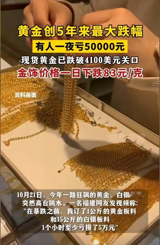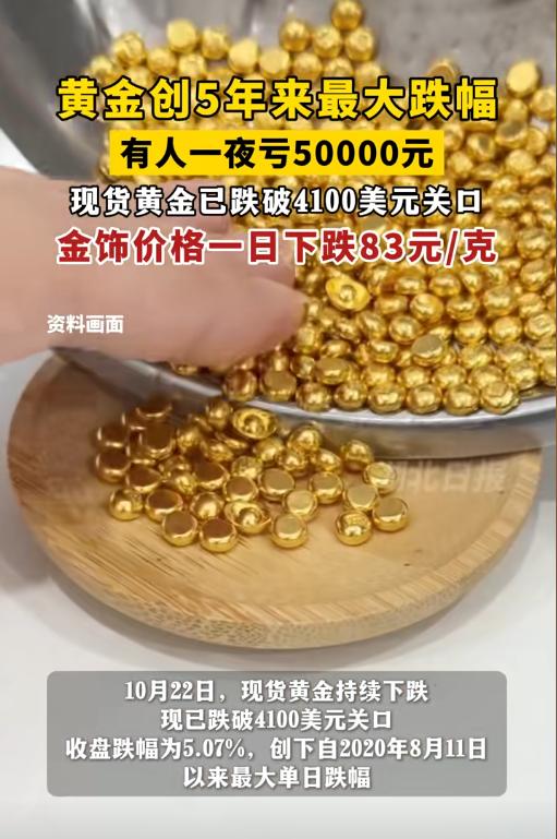 黄金“大跳水”!国内金饰克价一夜跌去83元 伦敦现货黄金10月21日创下2013年以来最大单日跌幅,国内金饰价格随之大幅下调,有品牌每克下跌超80元。 黄金的这次“闪崩”,生动地上演了一堂风险教育课。它打破了“黄金只涨不跌”的惯性思维,提醒所有投资者:任何资产过热都可能迎来冷却。暴跌背后,是市场对全球央行货币政策预期、地缘政治风险溢价的重估。对于此前蜂拥入场的“淘金客”而言,这无疑是一次剧烈的波动,但也为理性投资者提供了反思机会:投资本质是管理风险与收益的平衡,而非盲目追逐热点。长远看,健康的市场需要价格的合理回调,这比非理性的持续暴涨更可持续。此次震荡后,黄金是继续探底还是重拾升势,将是对全球经济情绪的一次关键测试。黄金行情价格