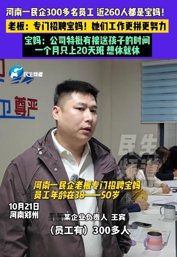 河南一老板招35岁以上的宝妈,10月21日,公司300多名员工,近260名宝妈在