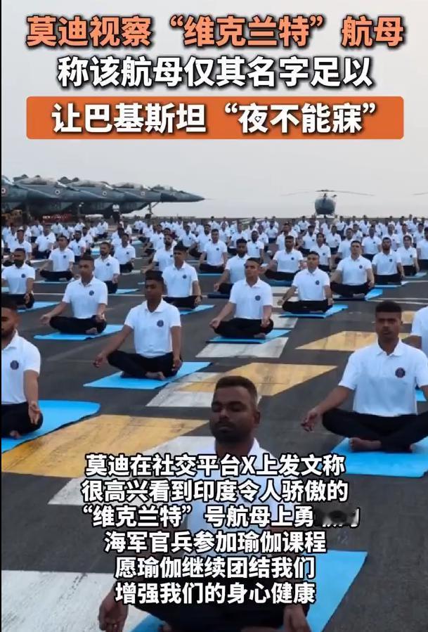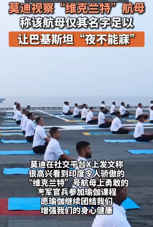印度航母,又刷新我们认知!别人家的航母甲板上停的是战斗机,印度的“维克兰特”号航母,甲板上,竟然是一群练瑜伽的士兵! (信息来源:金羊网 2025-10-21 印度数百官兵在航母甲板做瑜伽唱胜利歌) 据金羊网报道,10月20日,印度总理莫迪登上国产航母“维克兰特”号,与数百名海军官兵一同在飞行甲板上练习瑜伽,并高唱一首庆祝“大胜巴基斯坦”的原创歌曲。 莫迪本人也在社交平台X上发文称:“很高兴看到印度令人骄傲的‘维克兰特’号航母上勇敢的海军官兵参加瑜伽课程,愿瑜伽继续团结我们,增强我们的身心健康。” 乍一看,这似乎只是印度特色的“文化输出”——把瑜伽搬上航母,彰显民族自信。 但细究之下,这种行为背后折射出的问题,远比一场甲板瑜伽表演要复杂得多。 航母的本质是什么?它不是旅游观光船,也不是文化展演平台,而是国家海上战略力量的核心载体,是集航空作战、远程打击、舰队指挥于一体的高技术战争机器。 全球拥有航母的国家屈指可数,每一艘现役航母的甲板时间都极其宝贵,每一分钟都与战备状态、训练强度、作战效能紧密挂钩。 美国“尼米兹”级或“福特”级航母常年在海上执行高强度任务,舰载机起降频率以分钟计;中国“福建舰”虽尚未服役,但其电磁弹射系统和甲板调度逻辑早已进入实装测试阶段,一切围绕实战展开。 反观印度“维克兰特”号,这艘2022年才正式服役的国产航母,排水量约4万吨,采用滑跃起飞方式,至今尚未形成完整舰载机作战能力。 根据军武次位面报道,其主力舰载机‘光辉’海军型仍处于试飞阶段,俄制米格 - 29K 因维护问题出勤率低下,整艘航母舰载机数量严重不足,处于战力受限的尴尬状态。 在这种背景下,甲板上不练舰载机调度、不搞损管演练,反而铺开瑜伽垫、齐声高歌“胜利之歌”,与其说是军事展示,不如说是一场精心策划的政治表演。 更值得玩味的是那首“庆祝大胜巴基斯坦”的歌曲。 印巴之间近年不仅有边境摩擦,还在 2025 年 5 月爆发了一场持续 4 天的军事冲突。 所谓“大胜”并无事实依据,更像是国内民族主义情绪的自我催眠。 莫迪政府近年来频繁借助军事符号强化“强人”形象——从宣传“国产导弹”到宣称“击落巴方战机”,再到如今在航母上唱胜利歌,其核心逻辑或许并非提升国防实力,而是服务于选举与舆论动员。 这种将军事平台娱乐化、仪式化的做法,不仅模糊了军队的专业边界,也削弱了公众对国防建设真实进展的判断力。 当然,有人会说:瑜伽也是训练的一部分,印度海军推广瑜伽多年,有助于官兵身心健康。这话没错。但问题在于场合与比例。 在岸上基地、在舰员休息区推广瑜伽,无可厚非;但把本应用于舰载机起降、战术协同、应急响应的核心甲板空间,变成集体瑜伽课堂,就显得本末倒置。 这就好比一家顶级医院把手术室改成瑜伽馆,还宣称“这是我们的特色医疗文化”——形式再新颖,也掩盖不了功能错位的本质。 更深层的问题在于印度军工体系的结构性困境。“维克兰特”号从立项到服役历时近二十年,期间多次延期、预算超支、技术依赖严重。 其动力系统来自美国,雷达来自以色列,舰载机靠俄罗斯,连阻拦索都要外购。这种“万国牌”拼装模式,导致整舰集成度低、维护复杂、战力受限。 而政府却急于通过高调宣传“国产航母”来塑造“大国崛起”叙事,结果就是:硬件跟不上,就用仪式感来补;战力不足,就靠口号来撑。 一个国家若不能正视自身军事能力的真实水平,而沉迷于符号化的自我感动,最终只会陷入“表演式强军”的陷阱。 真正的国防现代化,不是靠甲板上的瑜伽照片,也不是靠胜利歌曲的歌词,而是靠扎实的工业基础、严谨的训练体系、透明的预算机制和清醒的战略判断。 中国始终主张各国根据自身国情发展国防力量,但同时也强调,军事建设必须服务于和平目的,必须建立在真实能力而非虚幻叙事之上。 印度若真想成为“印太”重要力量,与其在航母上练瑜伽,不如先把舰载机飞起来,把后勤保障做扎实,把指挥体系理清楚。