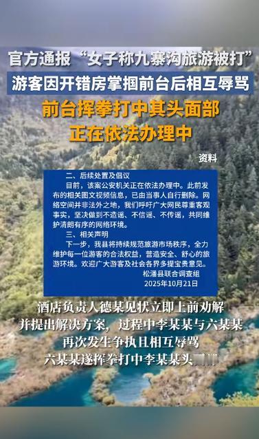 “严查到底!”10月19日,四川阿坝,一女子入住酒店后,发现和自己预定的房间不一样,就来到前台要求换房,沟通过程中,女子不满意服务员的解释,就推翻了前台的电脑,并扇了对方一巴掌!之后,服务员一拳打中女子面部。网友:算不算互殴? 这起事件本来只是一次普通的住宿纠纷,本该酒店道歉、游客接受就能解决,但最后却升级成了打人和网络舆论风波。 事情发生在四川阿坝州松潘县的贡巴酒店,关键原因是情绪失控、酒店管理不到位、信息传播失真三方面都出了问题。 10月19日,李女士(化名)在网上订了一间豪华房,到了酒店办理入住时,却被安排到普通房,她提出要换回原定房型,这本来是正常的沟通,但前台和她僵持不下,双方情绪越来越紧张。 李女士在脾气上来的时候直接将前台的来个台电脑给推翻了,紧接着又扇了前台工作人员一巴掌,这时候工作人员也忍受不了两人立马就开始了殴打。 随后在一旁的工作人员看到了之后赶紧上阻止并报了警,事后,李女士把自己被打的视频发到网上,只展示自己挨打的画面,称自己只是问房型就被暴力对待。 视频很快引发大量关注,网友纷纷声援她,指责酒店欺负客人,觉得这家酒店的服务态度十分不好,并呼吁要帮助李女士,可视频里缺了最关键的前因,真相在舆论里被掩盖。 后来,当地公安和文旅部门介入调查,事实才慢慢清楚,是李女士动手在先,虽然她确实受了伤,但医院检查后很快出院,并无大碍。 整个事件没有赢家,李女士冲动,把自己从合理维权者变成了攻击者,酒店员工出手,也让酒店品牌和形象受损。 案件还在公安进一步处理中,但教训已经很清楚,一个人、一家店,甚至一座城市的文明,不在于遇事能不能激烈回应,而在于能否冷静处理。情绪一旦失控,理性就下线,不管谁先动手,最后吃亏的都是自己。 那么通过这件事情也告诉我们,无论什么时候做事情的话,一定要保持冷静,不然像李女士这样原本占理的一件事情,最后却因为自己的情绪,闹成了更严重的后果。 对此,你还有什么看法呢? (信息来源 :荆楚网 )