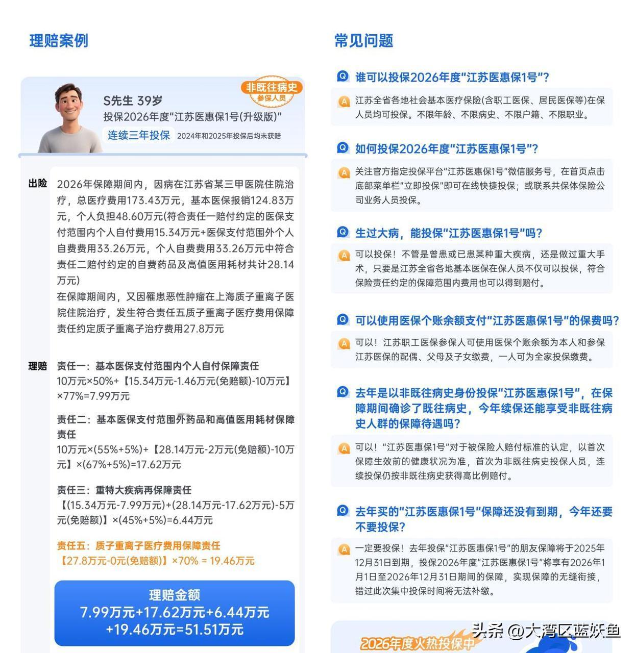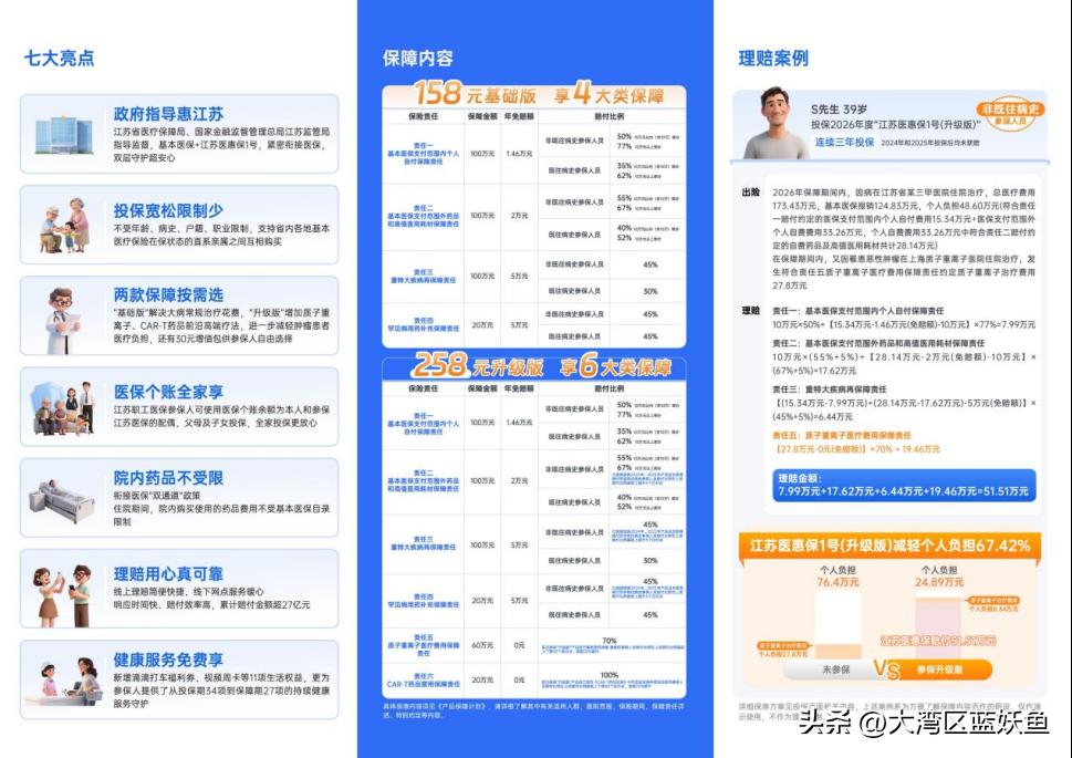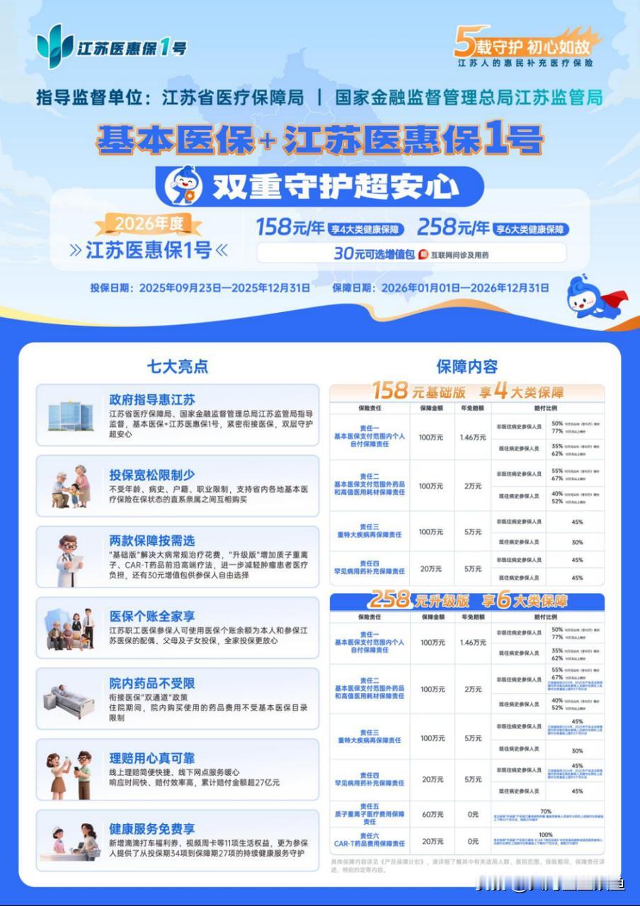 十一假期刚过,就收到社区通知,江苏各地的医保参保陆续开始了,只是不同地市开放时间不一样,特意定了闹钟提醒自己别错过。往年只给家人交基本医保,今年多做了些功课,搭配着买了江苏医惠保 1 号,用下来的体验想跟大家聊聊。 最开始是帮爸妈办医保续交,老人年纪大了,总担心生病时医保报销不够。咨询社区工作人员时,对方提到基本医保加上江苏医惠保 1 号能形成双层保障,我就多留意了下。爸妈都有高血压,之前想给他们买其他商业保险,要么因为病史被拒,要么保费太高,没想到江苏医惠保 1 号完全不限制年龄和病史,只要有江苏基本医保就能参保,这点特别省心。 给孩子办医保时,又研究了江苏医惠保 1 号的保障内容。它有 “基础版” 和 “升级版” 可选,考虑到孩子小,万一有需要,高端治疗能多份保障,就选了 “升级版”,像质子重离子、CAR-T 药品这些都包含在内。而且我是职工医保参保人,直接用医保个账余额就给孩子和爸妈都投保了,不用额外掏现金,全家参保流程很顺畅。 上个月妈妈住院,用到了几种不在医保目录里的药,当时还担心要全自费,后来想起有江苏医惠保 1 号。线上提交理赔材料后,没几天就收到了赔付,效率比想象中高。工作人员说它累计赔付金额已经超 27 亿元,还有 9 家保险公司共同承保,背后有政府指导监督,让人觉得靠谱。 现在参保还能享受不少福利,新增了滴滴打车福利券、视频周卡这些生活权益,平时带爸妈去医院复查,用打车券能省点钱。还有健康咨询、体检指导这些服务,从投保期到保障期都能享受,对家人健康挺有帮助。 要是你也在给家人办理医保参保,不妨了解下江苏医惠保 1 号,基本医保搭配着它,给家人的健康多添份守护,心里也更踏实。记得留意自己所在地市的医保开放时间,别错过了参保期。