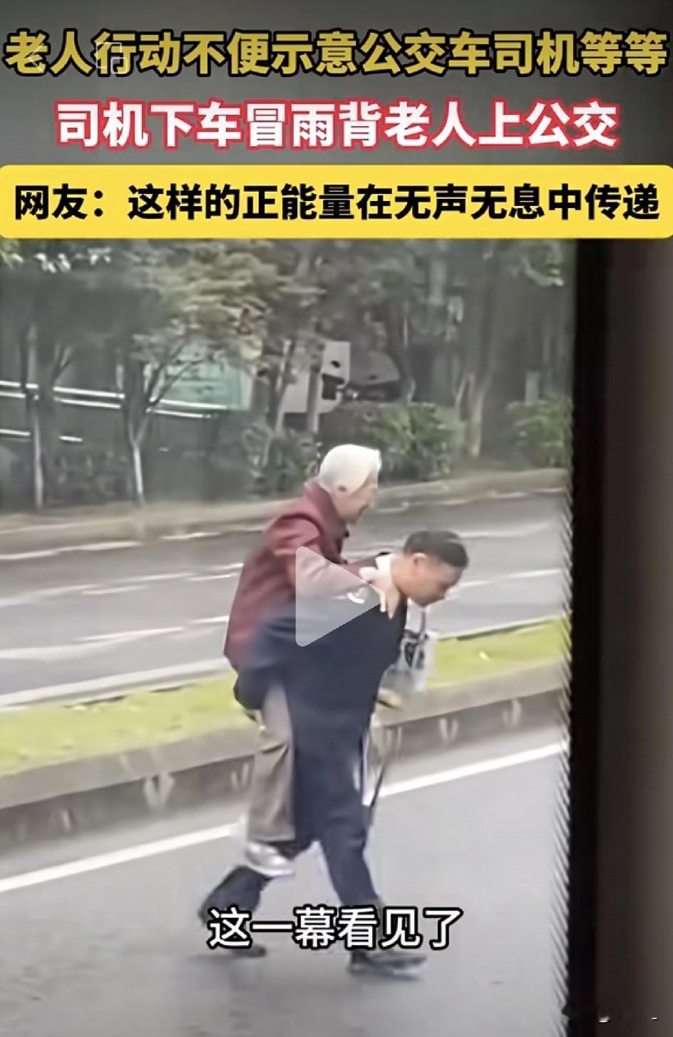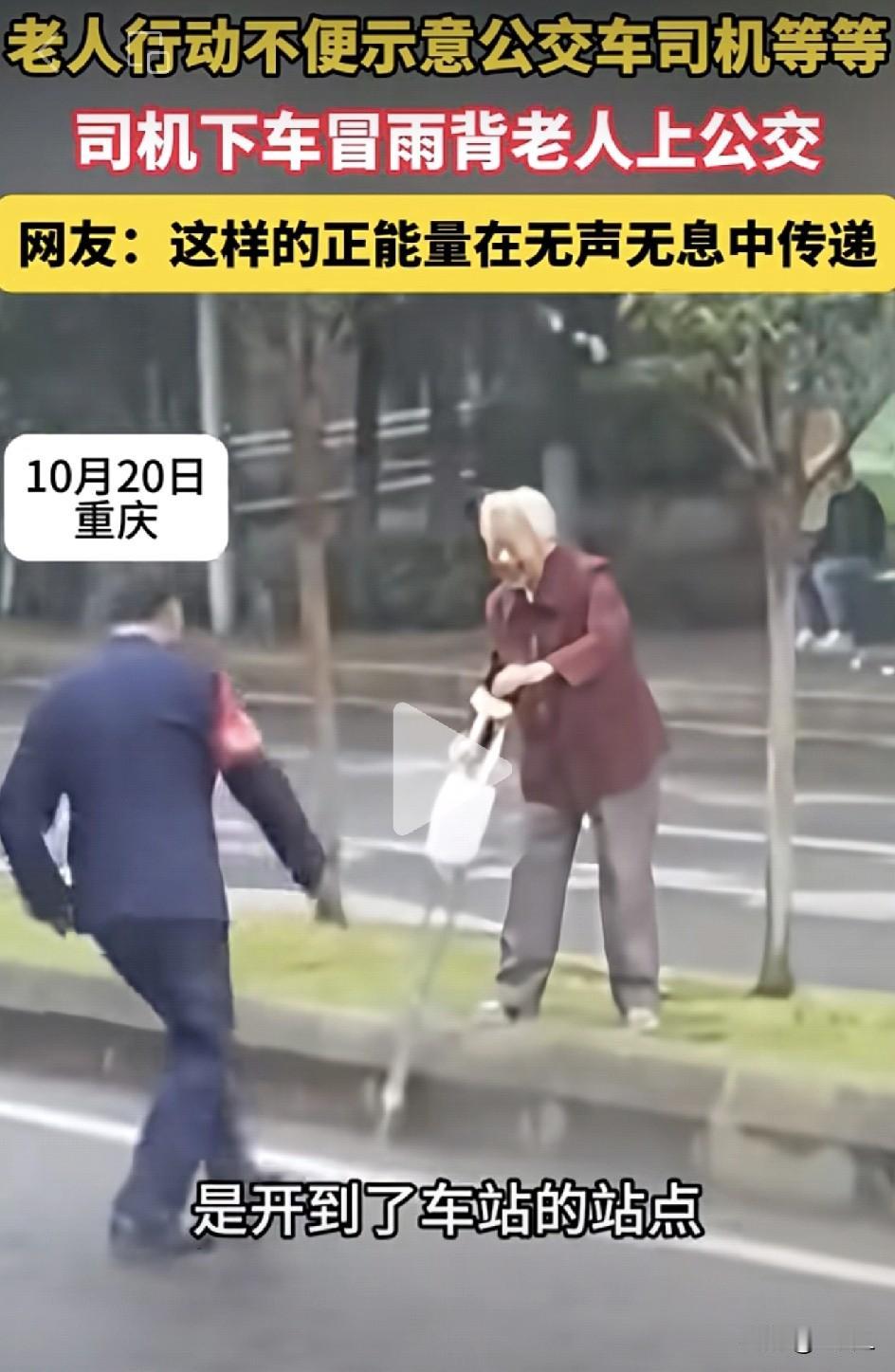 公交司机雨中一个动作刷屏!背起拄拐老人狂奔,全网点赞:好人一生平安!但网友的提醒更值得深思:我们该如何安放父母的晚年出行路? 10月20日,重庆某公交站点,公交车缓缓进站,而马路中间的隔离带上站着一位拄着拐的白发苍苍的老人。 当天还下着零星小雨,老人没有打伞,看上去很着急,向着公交车频频挥手,示意司机等等她。 看着老人着急而又如此行动不便,公交车司机打开驾驶室的门,一面观察后面的车辆,一面小跑奔向老人。 司机弯下腰,轻轻背起了老人,小跑着奔向停靠的公交车,把老人安全地安置在座位上。 全车的人,都在安静地等待,没有人催促,没有人不耐。 这一幕被一位热心的女士拍下来,发布到了社交平台,引来了广大网友的热心点赞和不吝赞美。 “司机师傅,好人一生平安!” “全国公交司机典范,全心全意为人民服务!” “向这位善良有大爱的司机师傅致敬!” “司机的善意。让老人感到了温暖。” “社会在回暖!” “百善孝为先!” “最美的一幂,让人感到非常温暖,好人一生平安。” “这才是正能量!” “这就是中华民族的优秀代表!” “公交司机冒雨背老人上车,以行动践行尊老美德,让传统善意温暖人心。” 但也有网友提出了善意的提醒: “为司机师傅点赞,但不支持老人自己出来。” “这倒是好事,万一我说是万一要是把老太太给弄摔了呢?” “谁家的老人怎么走那去了?也没有斑马线啊!是公交好司机让老人安全了!” “司机很优秀善良!老人的家人要警觉了,这样很危险!” “司机是好的,但是老年人拄着拐横过马路危险。” 网友说的都很有道理,司机的行为堪称典范,值得整个社会为他点赞!司机在用自己的实际行动,践行着中华优良传统。 让“老吾老以及人之老”,走进了现实。 但也不得不提醒一句,老人家身体不便,又是阴雨天,还是尽量不要出远门。 现在的小区,基本上家门口就可以满足日常生活所需。天气好的情况下,可以乘坐公共交通去远一点的公园耍耍。天气不好,还是尽量不出门,最多小区楼下站站。 湿滑的天气,别说老人,年轻人还说不定会摔跤呢,老人行动不灵活,骨头又脆,万一有个好歹,就得遭老罪了。 社会公共环境的善意越来越多,但老年人还是要多考虑自己的身体状况。 作为儿女,也要多关注老人的生活所需,遇到天气不好或者其他极端情况,一定多和老人沟通。 大家说对不对? 信息来源于洪观新闻,侵联删!