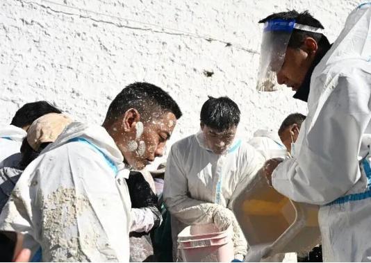 10月22日,日光之城拉萨刚刚苏醒,阳光温柔地照拂着布达拉宫。[奋斗] 一场延续了300多年的传统“换装仪式”,又一次在这里热闹启程。 按照“老规矩”每年藏历九月前后。 拉萨雨季落幕、寒意未深时,布达拉宫的粉刷工作就会如期启动。 粉刷使用的涂料以白灰、红土和黄土为主要原料,并按传统配方掺入牛奶、白糖、蜂蜜及牛骨胶等天然材料。 这些添加物能增强涂料黏性,使其更牢固地附着在墙体表面形成保护层,减缓雨水和日照对外墙的侵蚀。 布达拉宫管理处的工作人员负责高空作业,他们身系安全绳,手持长柄刷或喷枪,沿宫墙立面逐步涂刷。 地面人员则分工协作,进行原料搬运和涂料传递,参与人群包括本地居民、专程赶来的志愿者,以及部分偶遇活动的游客,大家自发加入传递涂料或辅助清理的工作。 这几年由于搅拌和喷涂设备升级,加上作业流程优化,原本需要半个月的粉刷周期,现已缩短至一周左右,效率提升让这一传统维护与现代技术得到更好融合。 粉刷遵循严格的颜色顺序:先涂刷白宫部分,接着红宫,然后是黄色装饰构件,最后完成门窗的黑色边框。 在藏族文化中,这四种颜色各有象征意义:白色代表和平,红色象征权威,黄色寓意繁荣,黑色则用于驱邪避灾。 每年的粉刷时间也与藏传佛教节日相关联,藏历九月二十二日为“降神节”,相传是佛祖重返人间的日子,人们相信洁净明亮的建筑更能吸引神灵降临,因此习惯在节前完成粉刷。 随着布达拉宫启动粉刷,拉萨城内的大昭寺、色拉寺等寺庙以及许多民居也陆续开始秋季粉刷,整座城市逐渐进入迎接藏历新年的氛围中。 布达拉宫年度“换装”,游客竟排队舔墙?网友评论亮了! “三百年来,布宫白墙红壁的焕新秘诀,就藏在一桶桶掺着牛奶与蜂蜜的涂料里。” “谁能拒绝舔一口‘抹了蜜’的布达拉宫呢,不过说实话,我只尝到了石灰的涩味,奶香味得靠想象力。” “时间长了,不会‘馊’了吗? “作为去年参与过的志愿者,我得说这是最独特的旅行体验,虽然累得腰酸背痛,但看到布宫焕然一新,心里特别自豪。” “那些悬在空中的‘蜘蛛人’真是令人敬佩,他们身背涂料,在百米高空为这座千年宫殿仔细粉刷,是真正的幕后英雄。” “每年这个时候,整座拉萨城都仿佛在准备一个盛大的节日,随着布达拉宫粉刷的开始,大昭寺、色拉寺等地也会陆续开始粉刷,然后就是居民们的房屋,整个城市都焕然一新,准备迎接藏历新年。” 你觉得这种将牛奶、蜂蜜等食材用于古建筑保护的传统智慧,在现代社会有哪些独特价值?欢迎在评论区分享你的观点! 信息来源:西藏日报