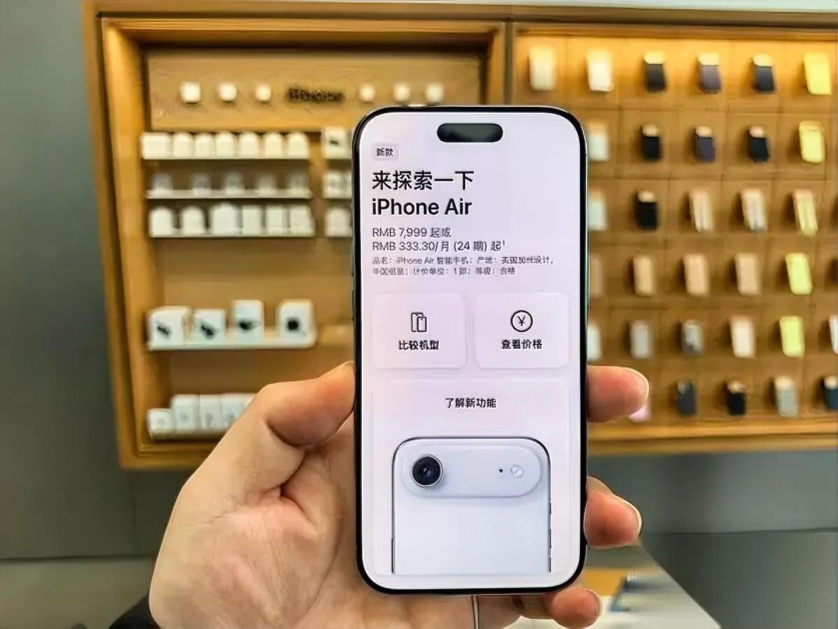 苹果新机翻车了? 刚开售就破发,这波有点意外 路过王府井苹果店,发现来看iPhone Air的人还不少。有果粉说“165g拿在手里像没拿手机一样”,天蓝色真机确实清新,强光下像银色但更通透。不过这机子为了薄,牺牲有点大:单摄、续航一般,7999元的价,感觉夹在Pro和标准版中间有点尴尬。 黄牛都直言“Air不如Pro Max好赚”,首发就跌破发行价,反观标准版还在溢价。这让我想起MacBook Air的成功路径,苹果可能想复制“轻薄美学+中端定位”的策略。但手机和电脑不同,用户对影像和续航要求更高,Air更像“尝鲜型选手”。 在我看来,苹果这步棋是想细分市场,用设计拉动增量。但消费者会不会为“极致薄”买单?毕竟七千多买个备用机,性价比见仁见智。话说回来,如果你厌倦了“半斤机”,想体验下“纸片手机”,Air确实有点吸引力。 你觉得,这种“牺牲性能换设计”的思路,算苹果的创新还是妥协?要是你选机,会考虑iPhone Air吗?