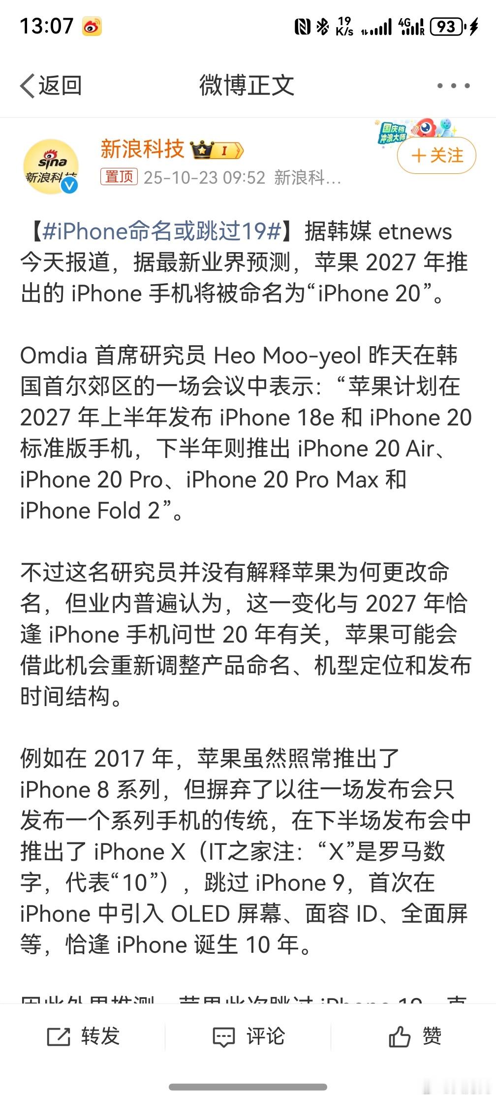 iPhone命名或跳过19 ,好家伙,苹果没研究过中国市场呀, 18有很多谐音梗的,1818要发要发[doge][doge]