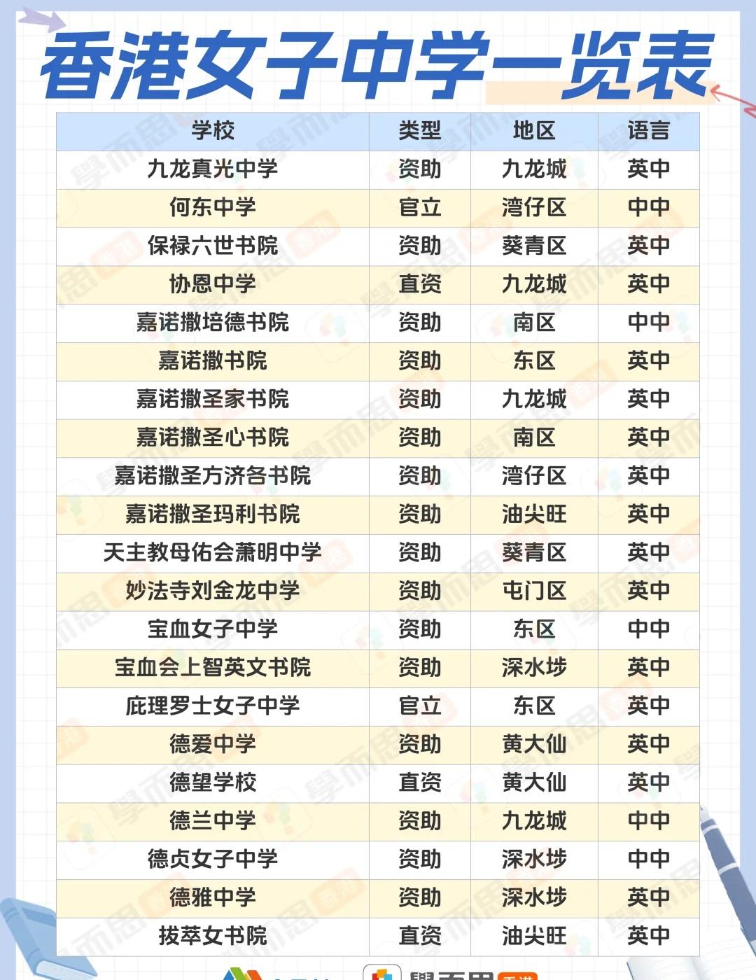 香港女娃选校必备👦全港女子中学全汇总 昨天香港学而思家长帮已经为大家整理好了🌟香港男子中学的名单🌟有很多家长问有没有香港女子中学的汇总呢🤔 香港学而思家长帮今天就继续给大家分享🌟香港女子中学一览表🌟香港中学申请马上就要开始啦,赶紧码住吧,香港学而思家长帮也会分享更多关于香港中学的信息📚成为各位同学升中路上的神队友💪 香港 香港升中 香港小升中 香港中学 香港小学 香港小学生 香港中学生 香港教育 香港呈分试
