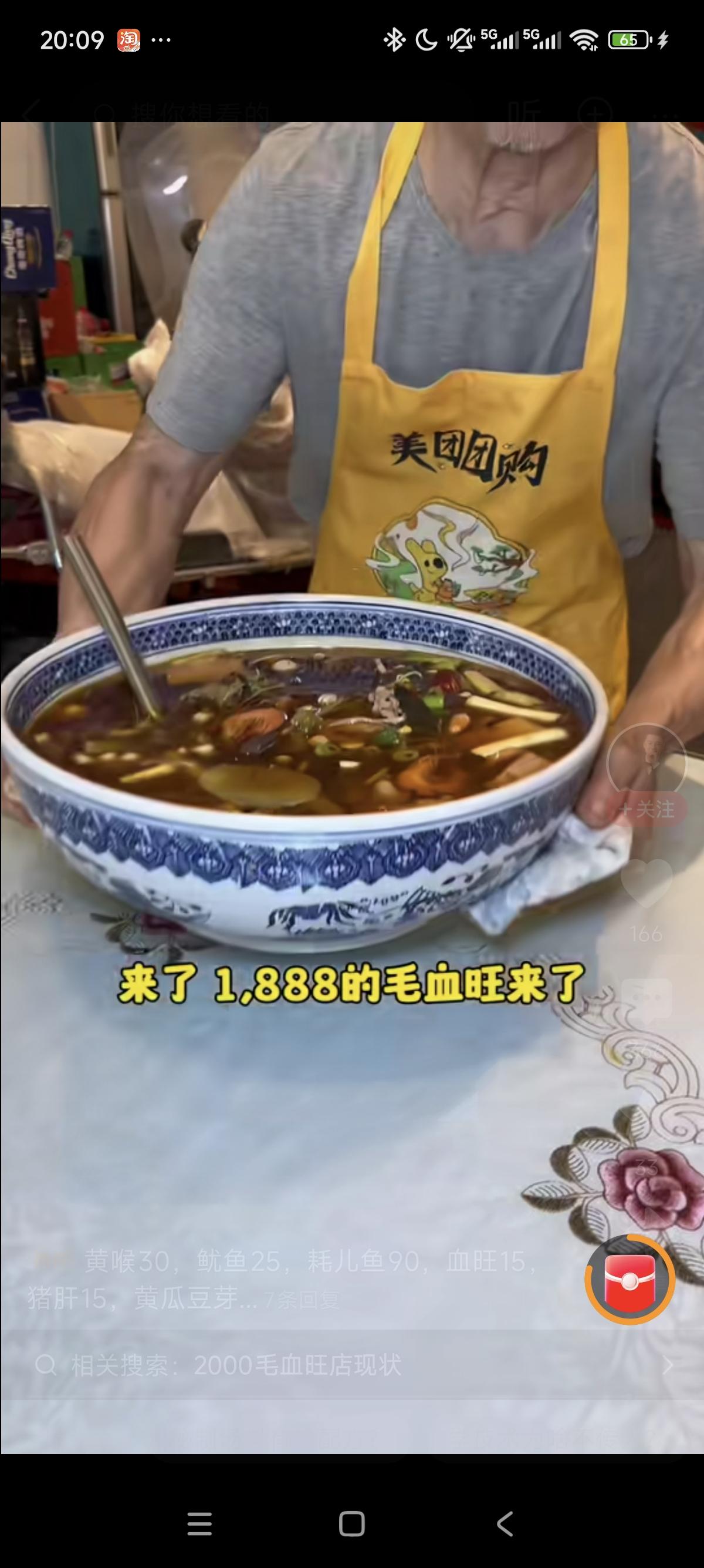 重庆的,天价毛血旺真的是,一天一个价呀! 昨天刷抖音,说是要1888,今天就突然暴涨到了2000,关键是你说贵,他竟然就让你赶紧走远一点。 并且他还表示了他们做的都是良心生意,做的全是回头客,想吃还要提前几天预定,要不然还吃不到他这独家秘方,做出来的毛血旺。 早在几年前我去他的店吃过200块的。毛血旺那时候虽然贵,但是分量还是给的足足的,他最多能赚150块钱。他这卖2000块钱。不得赚1900呀。 这个生意三天开一单就够了吧?我想问本地重庆的朋友们,你们有没有去吃过这家的毛血旺呢?究竟有多好吃呢?