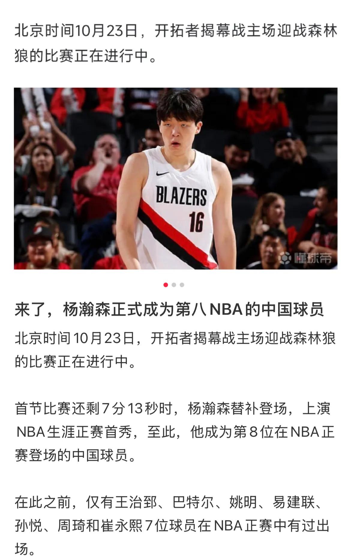 首秀2分1板数据虽不起眼,但比同期姚明的0分2板稍强。起点高低不决定终点远近,姚明用勤奋书写了传奇。给年轻球员时间成长,杨瀚森未来可期[赞][赞][赞] 杨瀚森常规赛首秀2分1篮板杨瀚森NBA常规赛首秀陪看 NBA吐槽大会