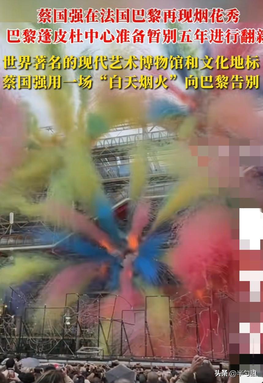 前阵子,蔡国强作秀喜马拉雅“炸山”的事儿刚平息,不少人都觉得,这波争议下来,他总该歇业避避风头吧?结果人家根本没闲着,国内罚完款,转头就把烟花又带到巴黎去了 。 当地时间10月22号下午,巴黎蓬皮杜艺术中心宣布要闭馆翻新五年,蔡国强直接在闭馆前搞了场大作秀,叫《最后的狂欢》“白天烟火”秀 。 据说把蓬皮杜的外墙当成了巨型画布,用烟花在上面“作画”,还融合了传统和科技,场面看着挺热闹 。 本以为这波是在巴黎刷了波存在感,没成想反转来得飞快。第二天,巴黎巴塞尔艺术展会直接宣布,原定于当天下午办的《激荡新视野:蔡国强和卡地亚基金会》对话活动取消了,连官网的活动信息都撤得干干净净 。 这操作也是有点迷,刚在蓬皮杜“放完炮”,下一场活动就黄了。难不成,法国人不懂欣赏?不过据烟花周围的住家户反应,这场又是以环保为题的烟花秀,气味太难闻了,污染空气啊。 不过大家可以欣赏下效果图和他的实际操作图,就明白了,依旧是那不变的“鸡毛掸子”风格啊。谁看了不摇摇头,这艺术成分到底哪来的!