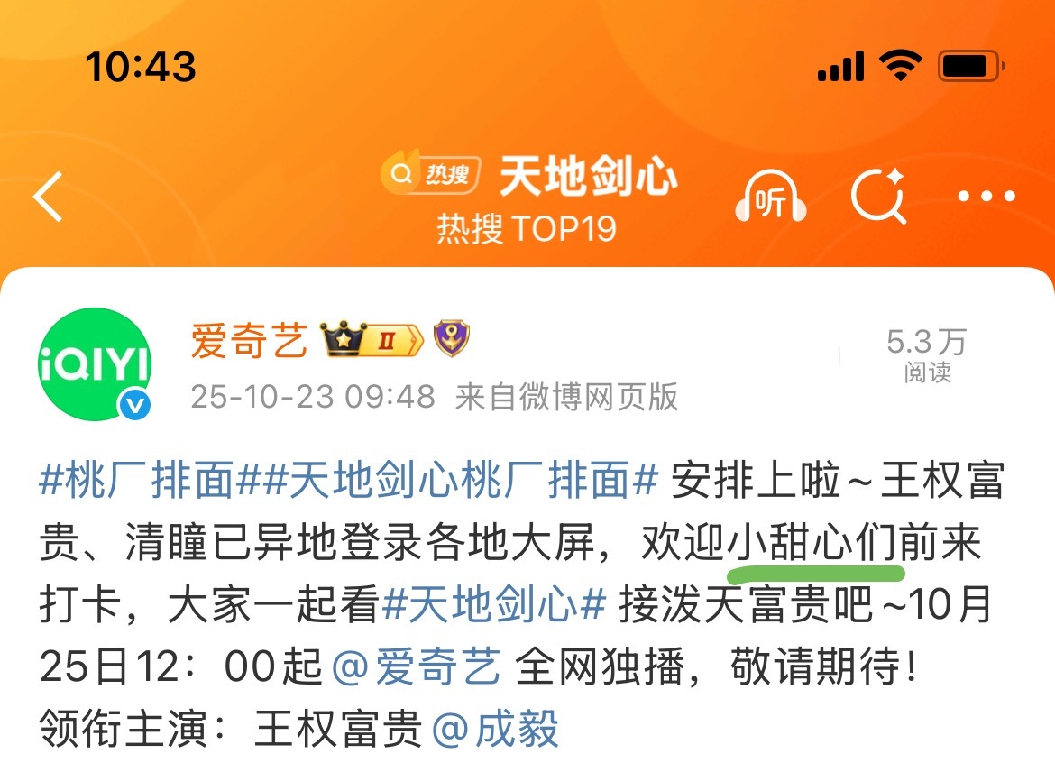啊啊啊,破8000了!天地剑心爱奇艺热度值破8000+ 这个富贵少爷太牛了