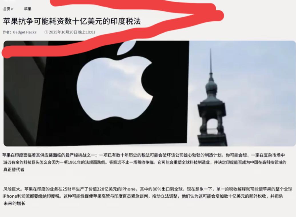 印度又要割韭菜了:苹果8条产线从中国搬到印度后,印度拿出1961年法律,说苹果不